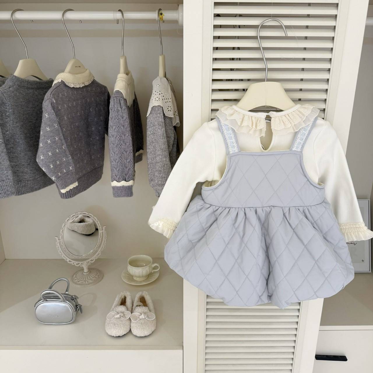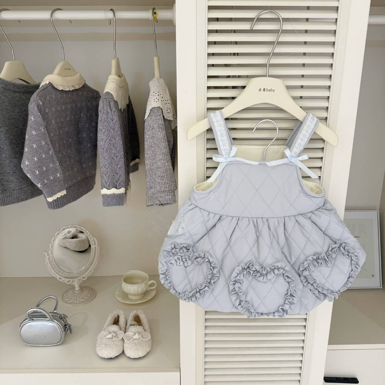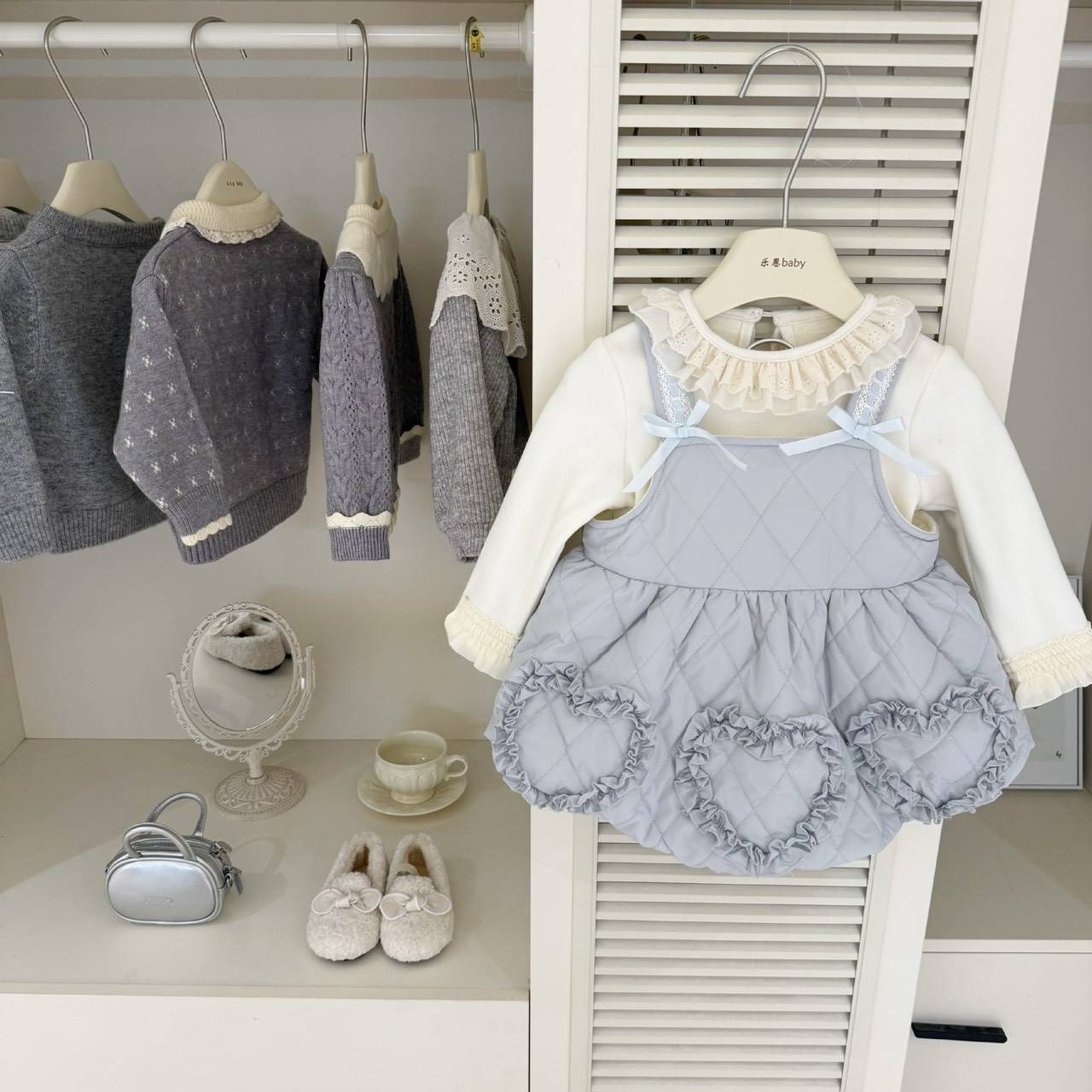 愛心花邊吊帶裙加絨套裝