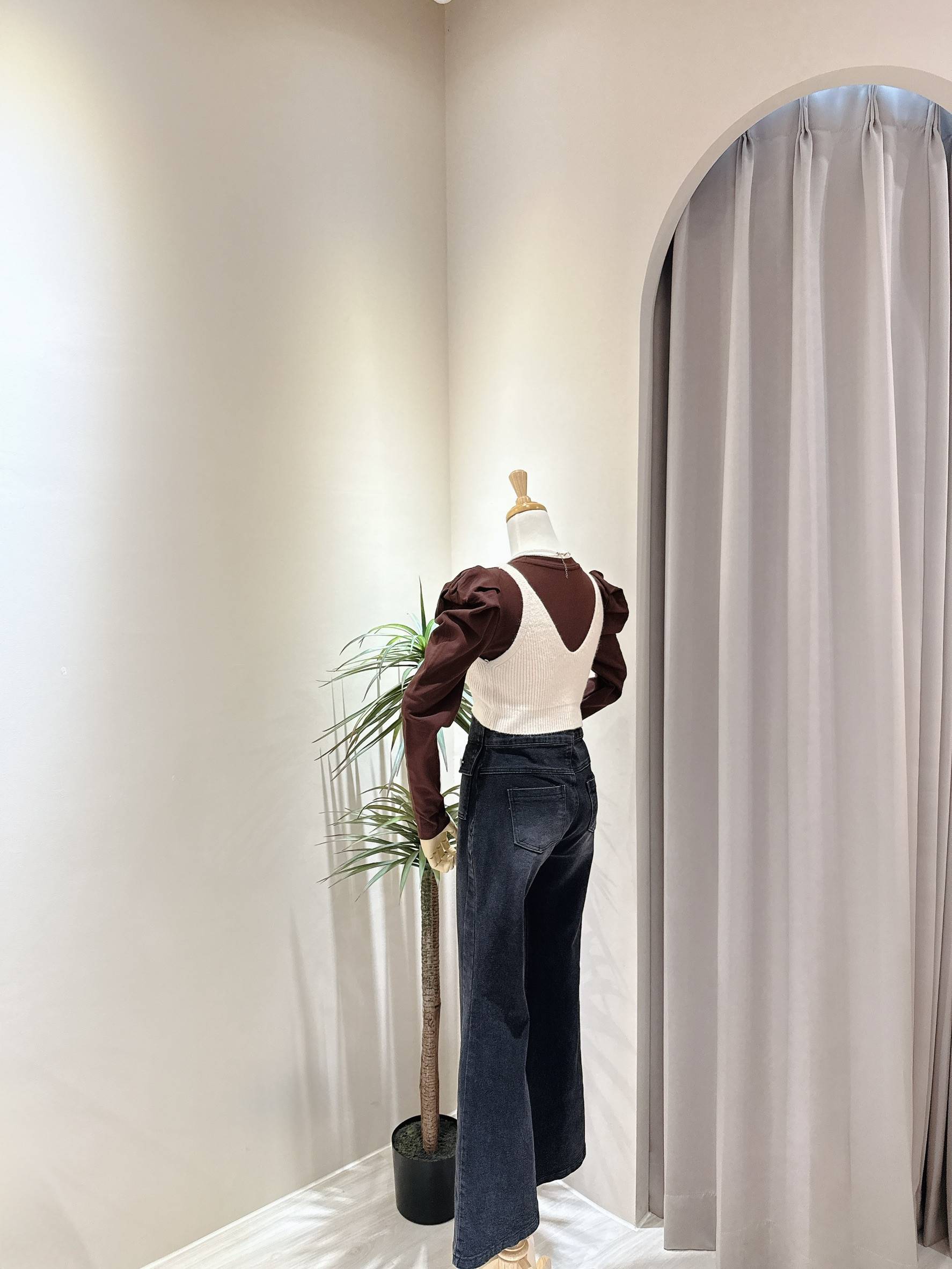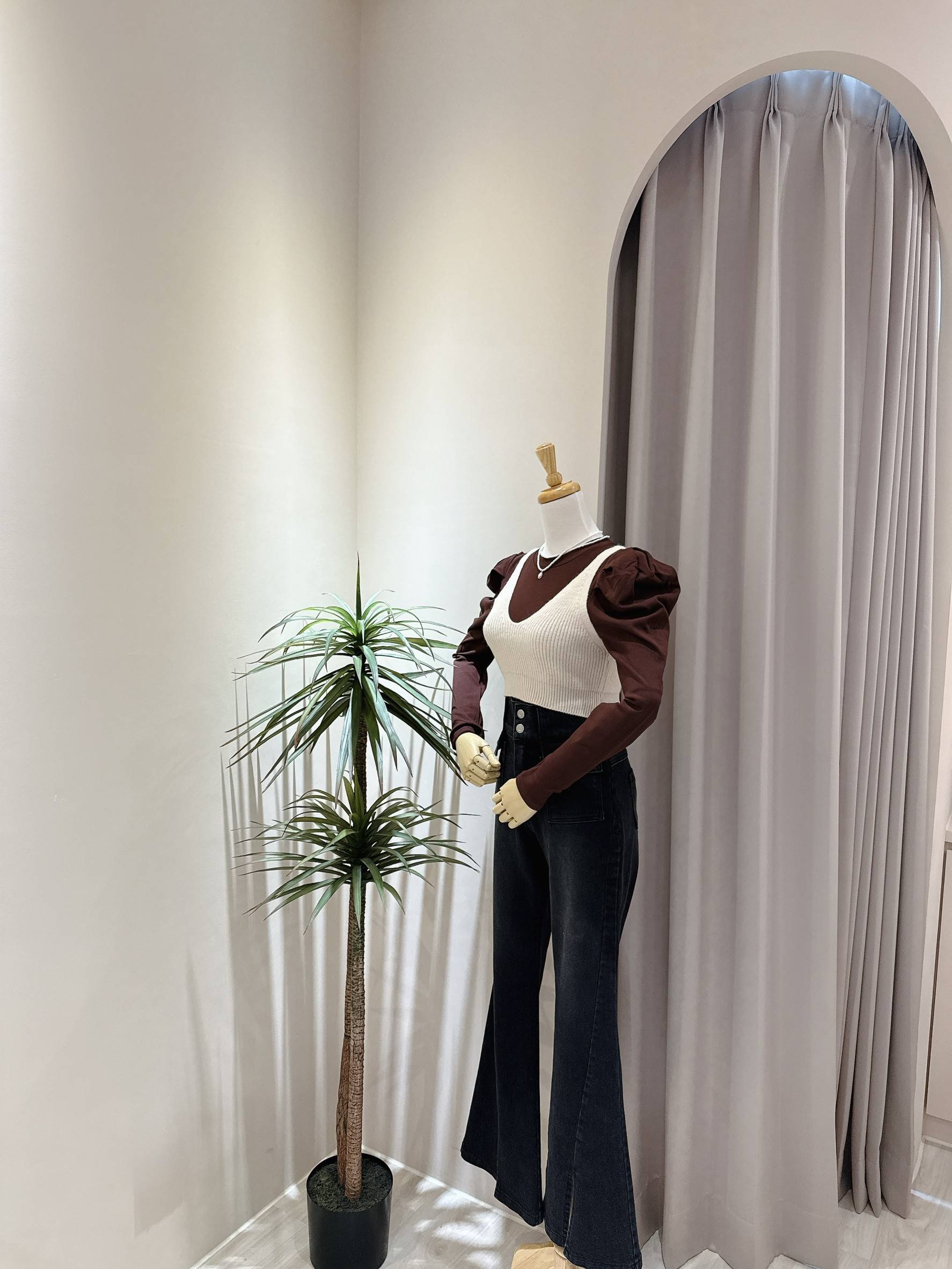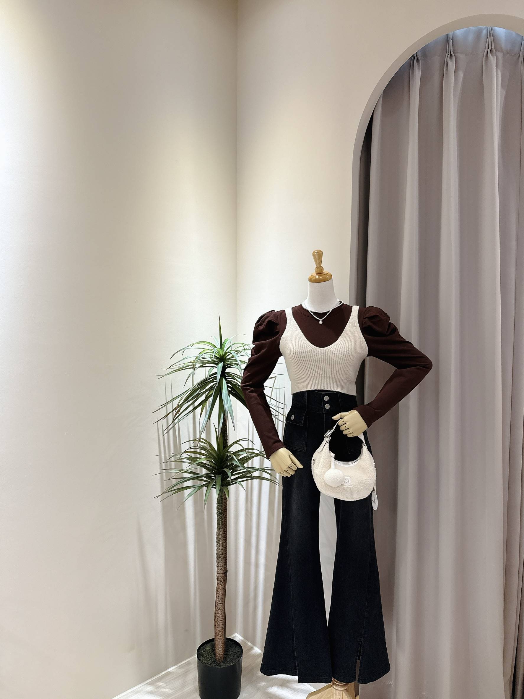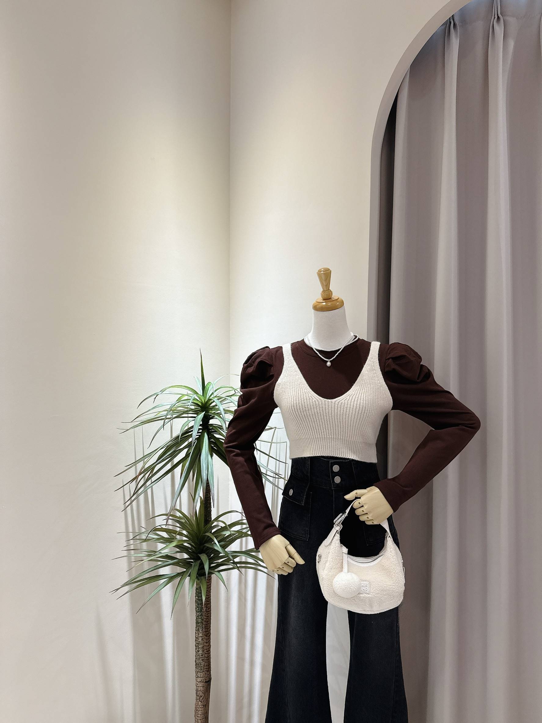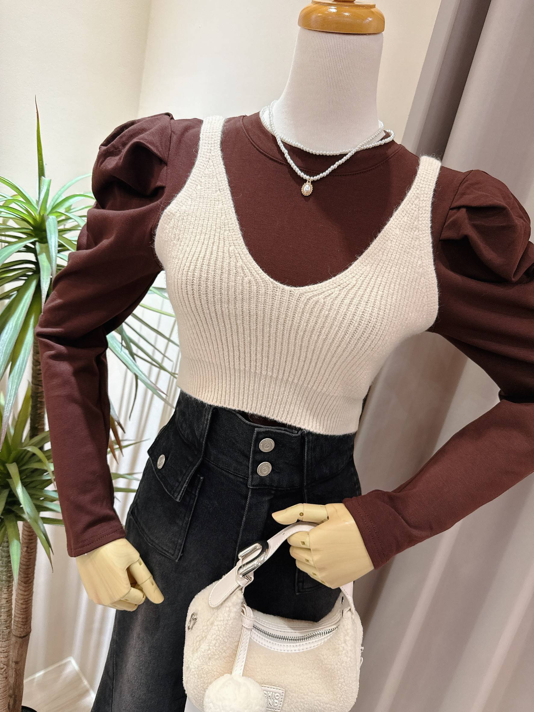 粗針織馬甲背心+公主袖厚磅棉上衣