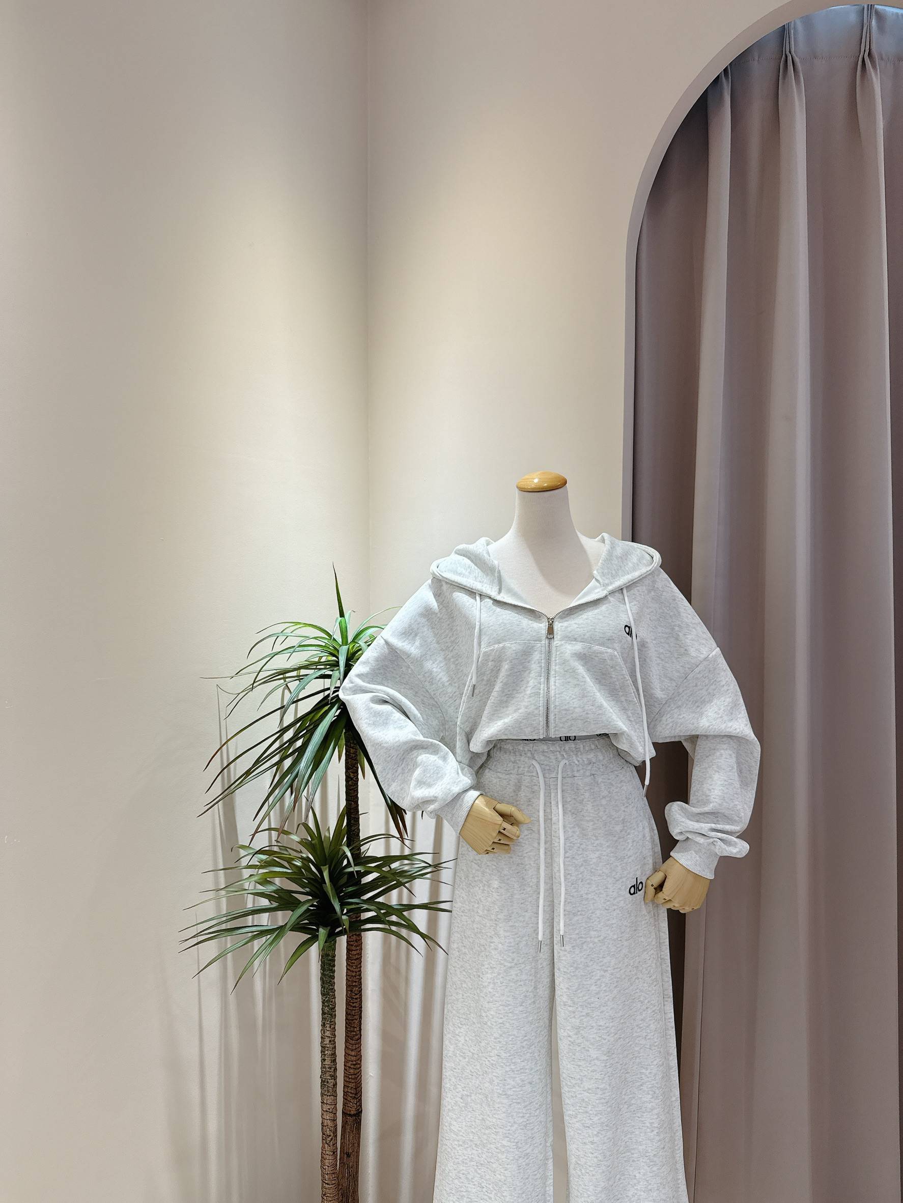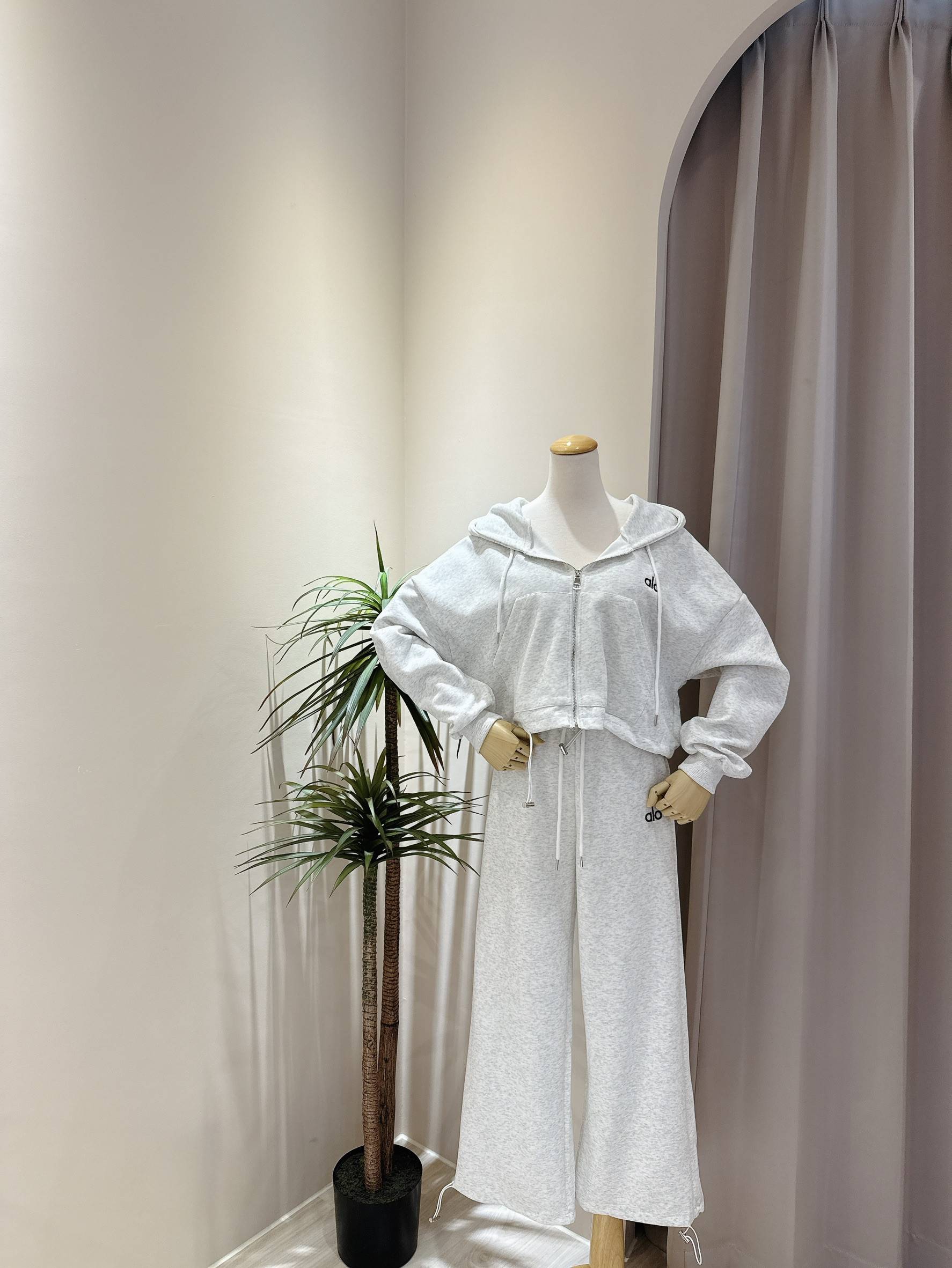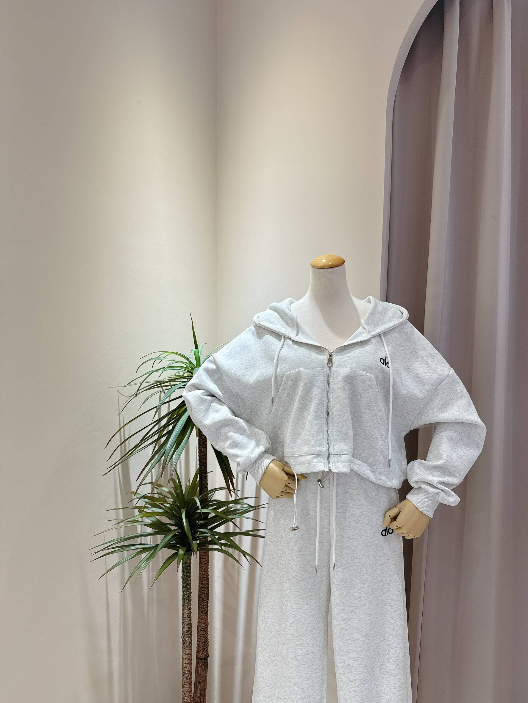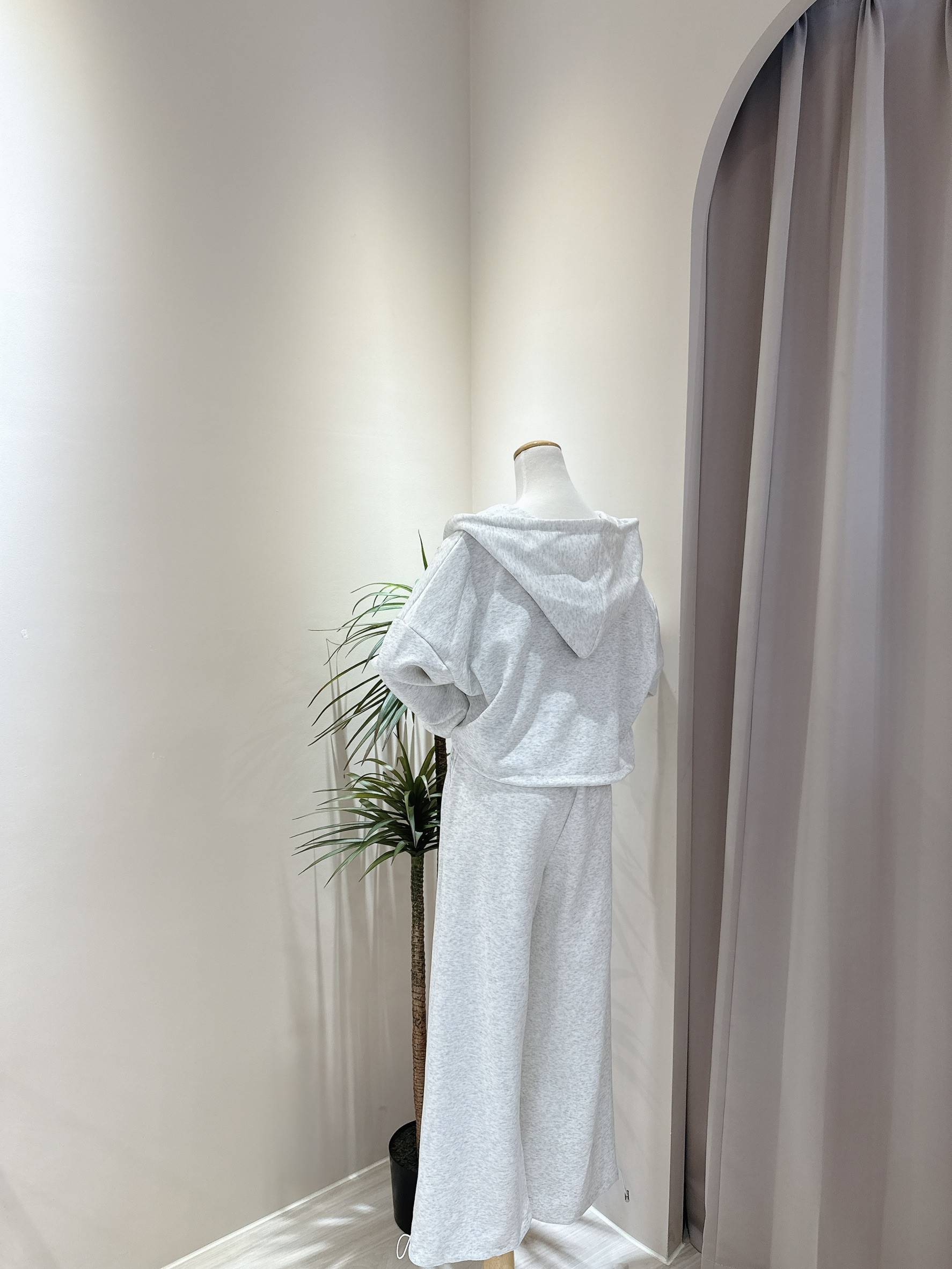 立體小刺繡連帽外套+假兩件式休閒寬褲