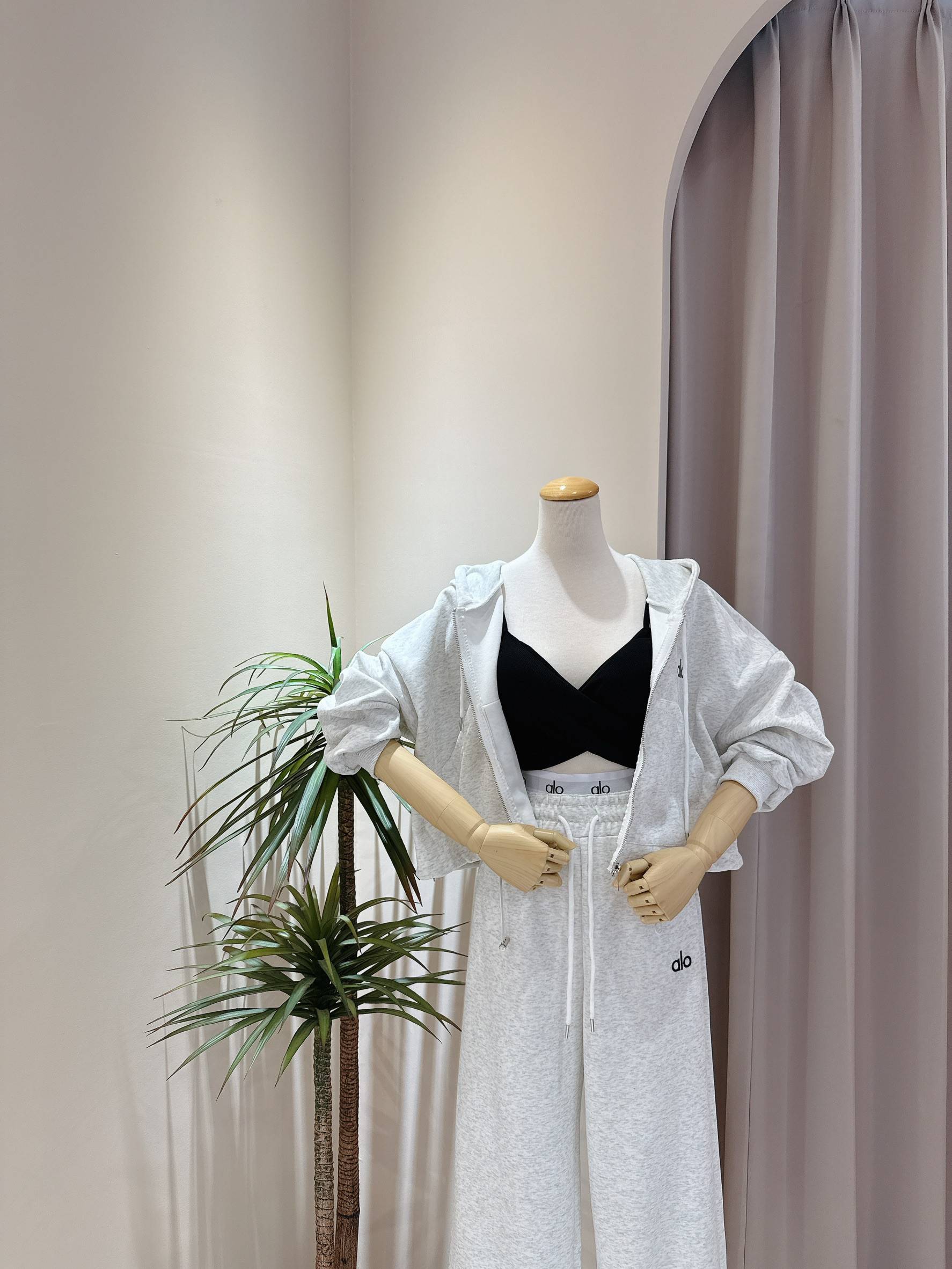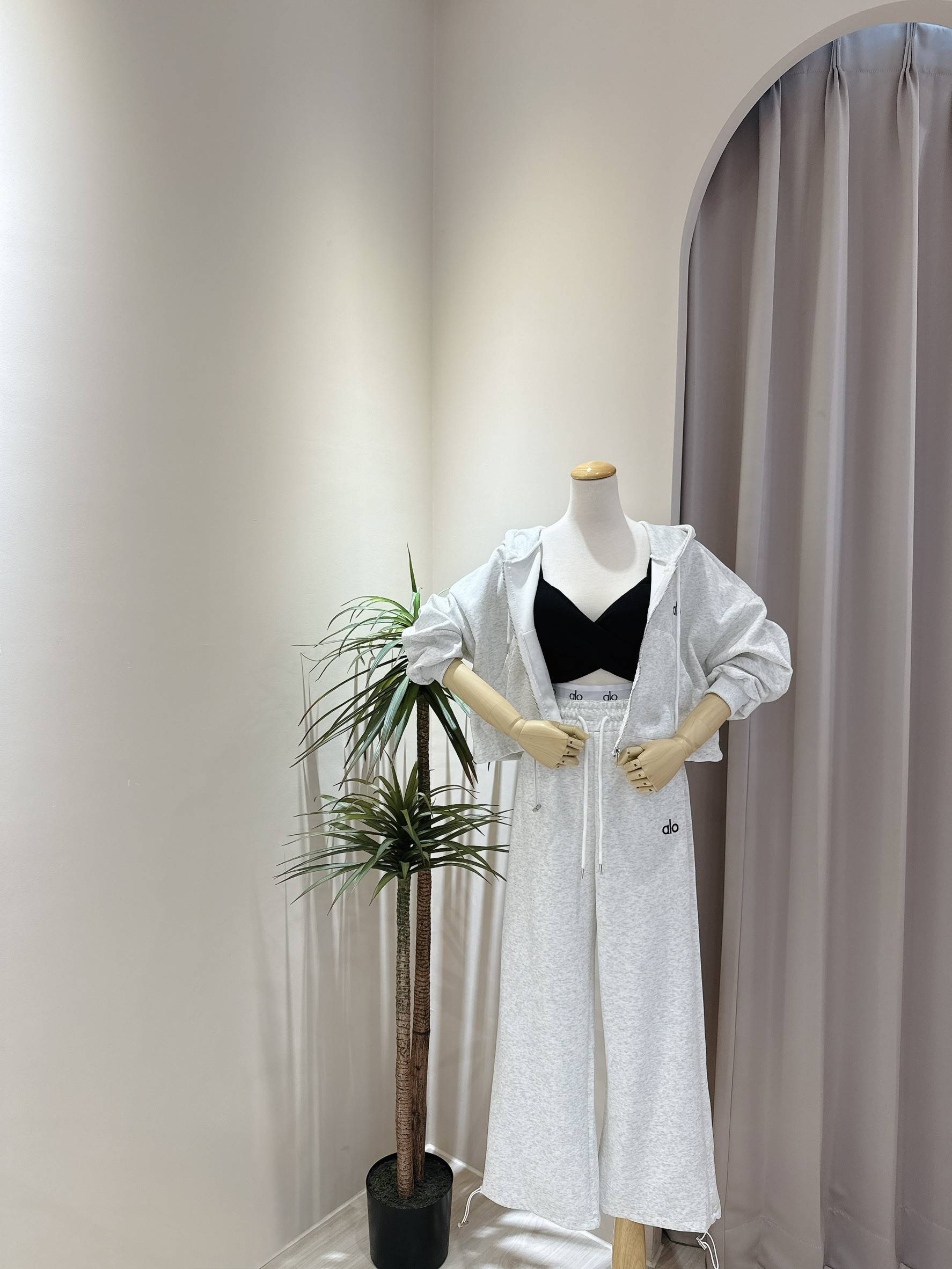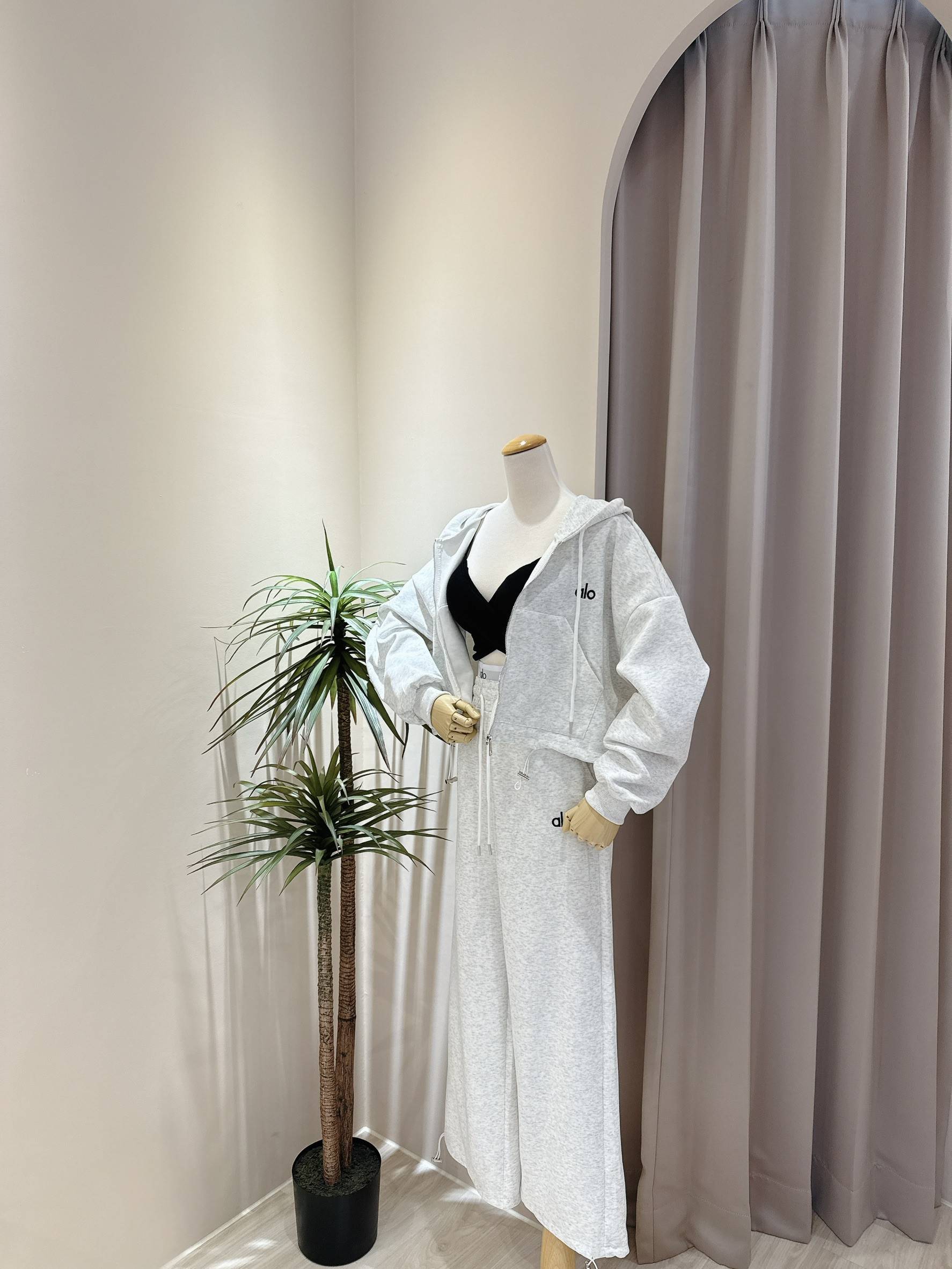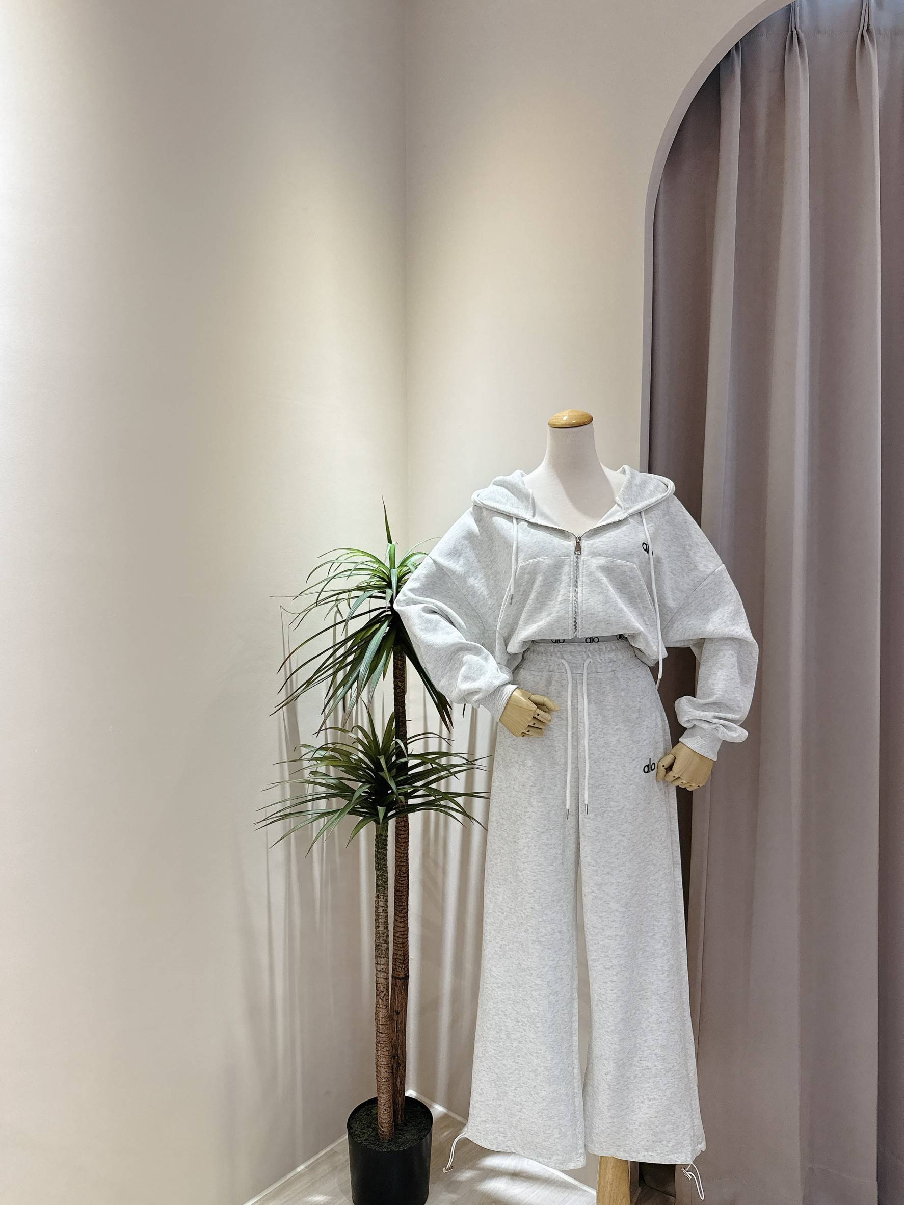 立體小刺繡連帽外套+假兩件式休閒寬褲