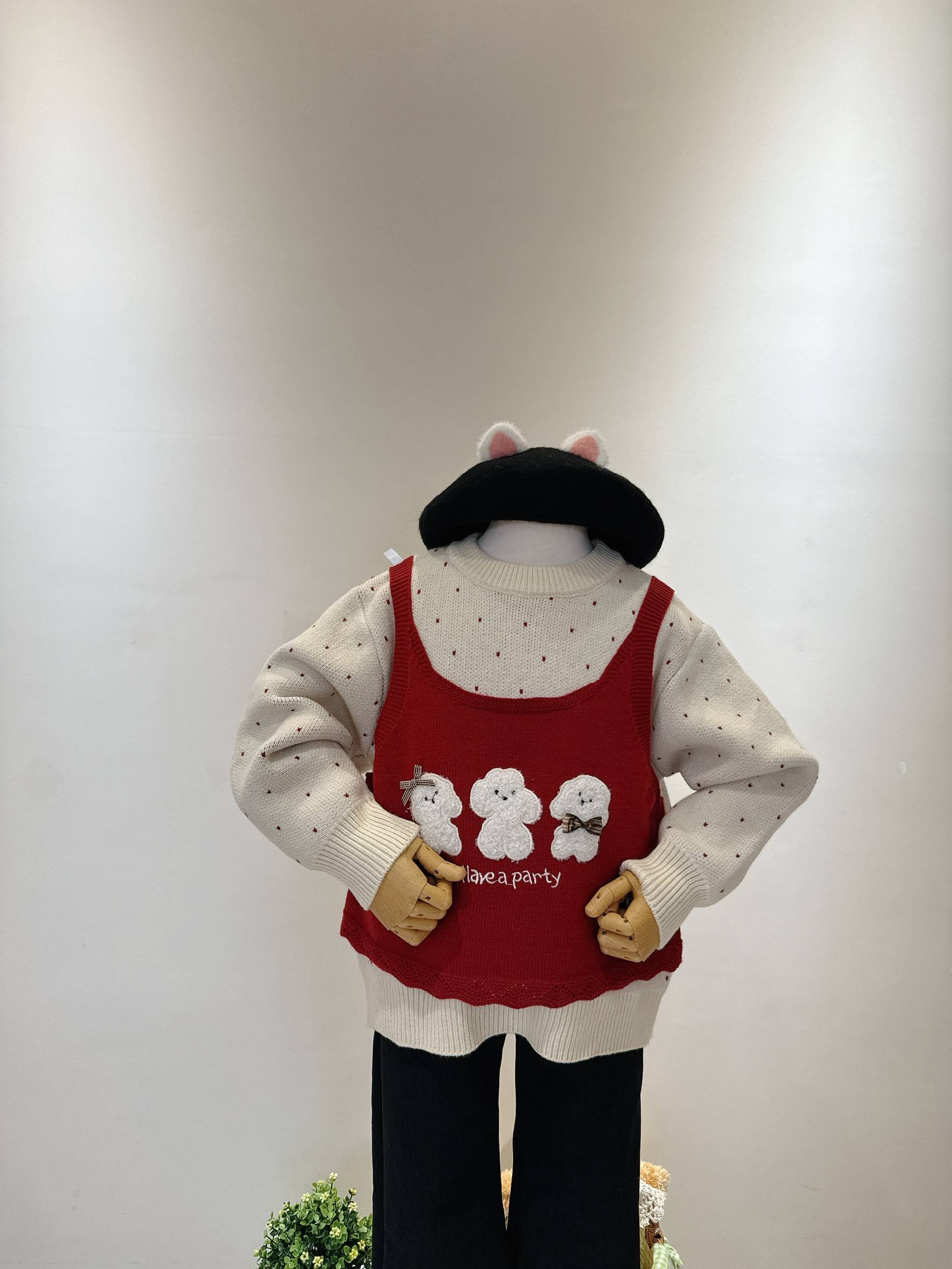 背心小狗針織三件套(套裝)