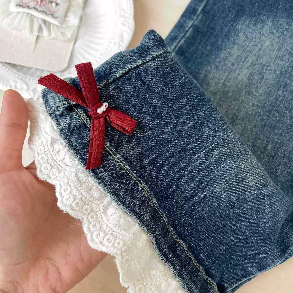 蕾絲蝴蝶結牛仔褲
