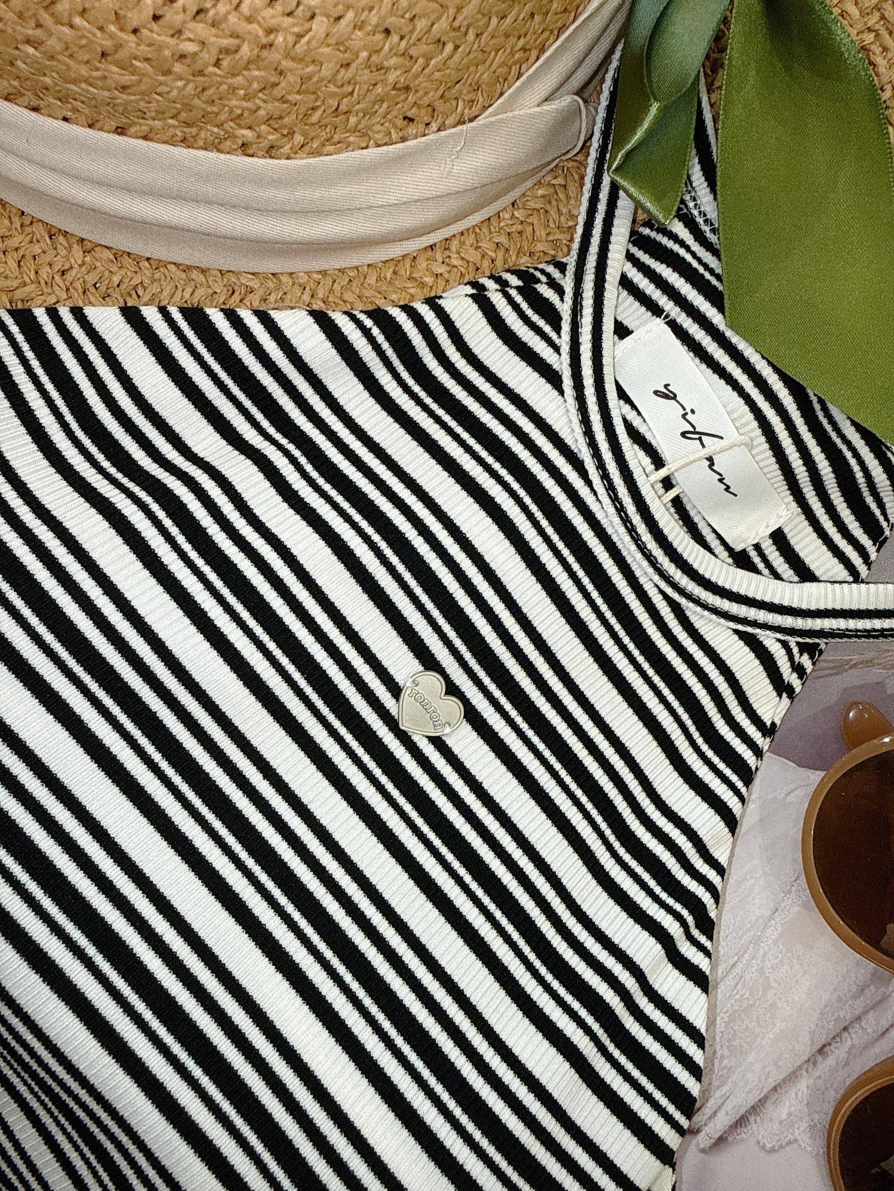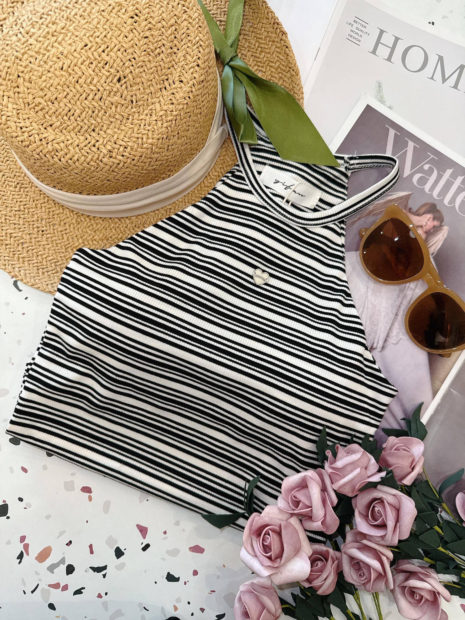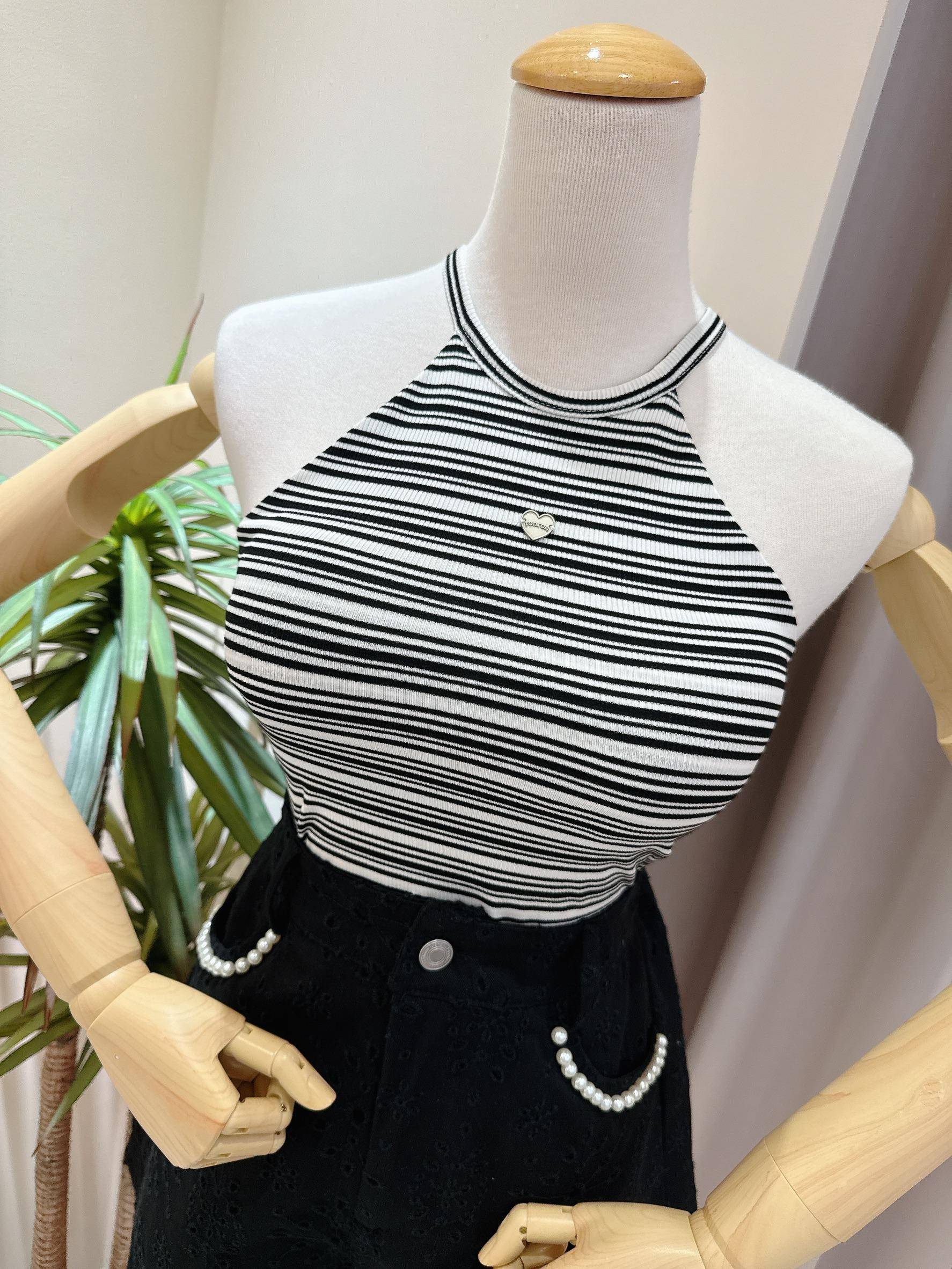 條紋霧面愛心小鐵牌削肩罩杯背心