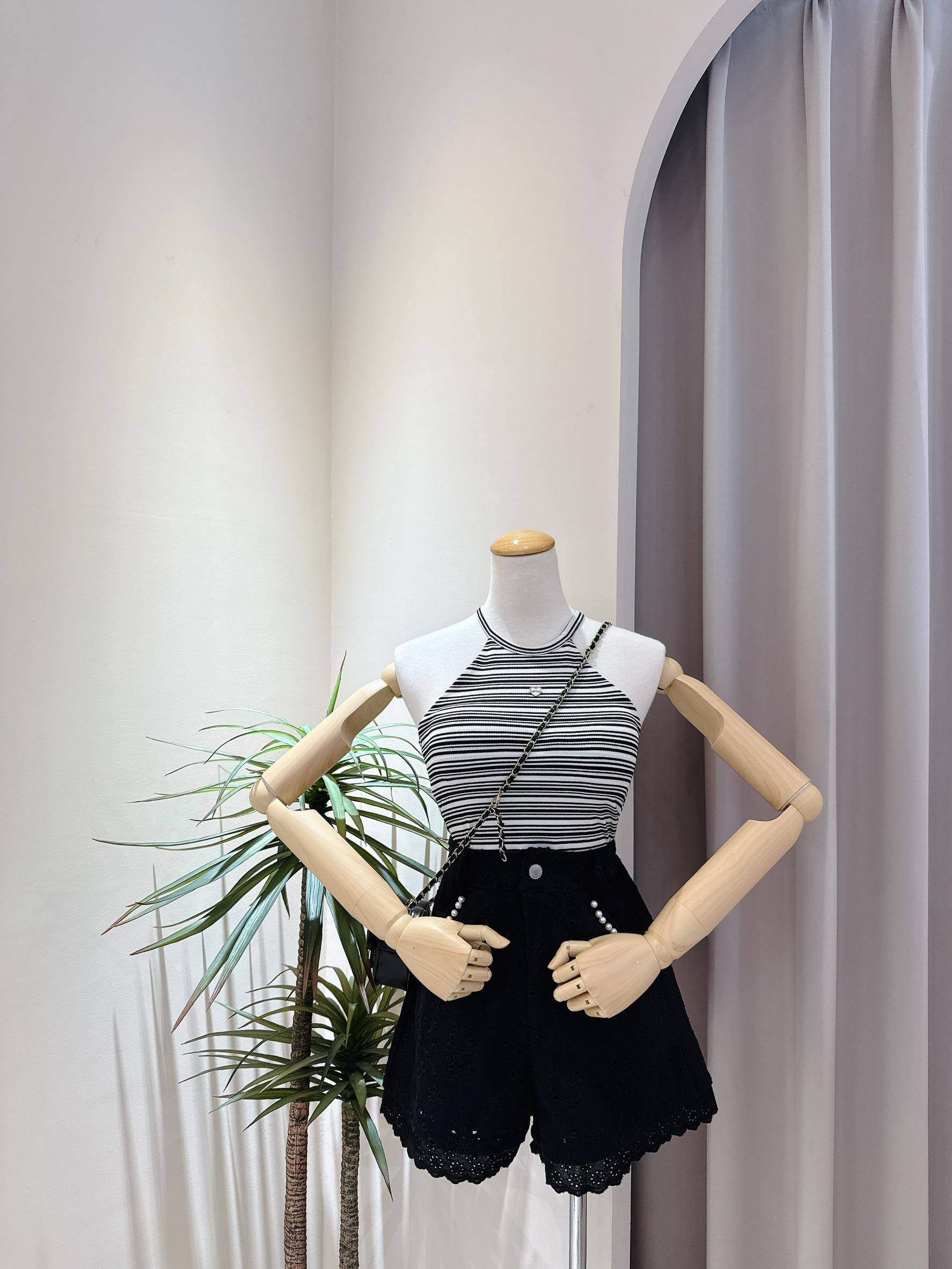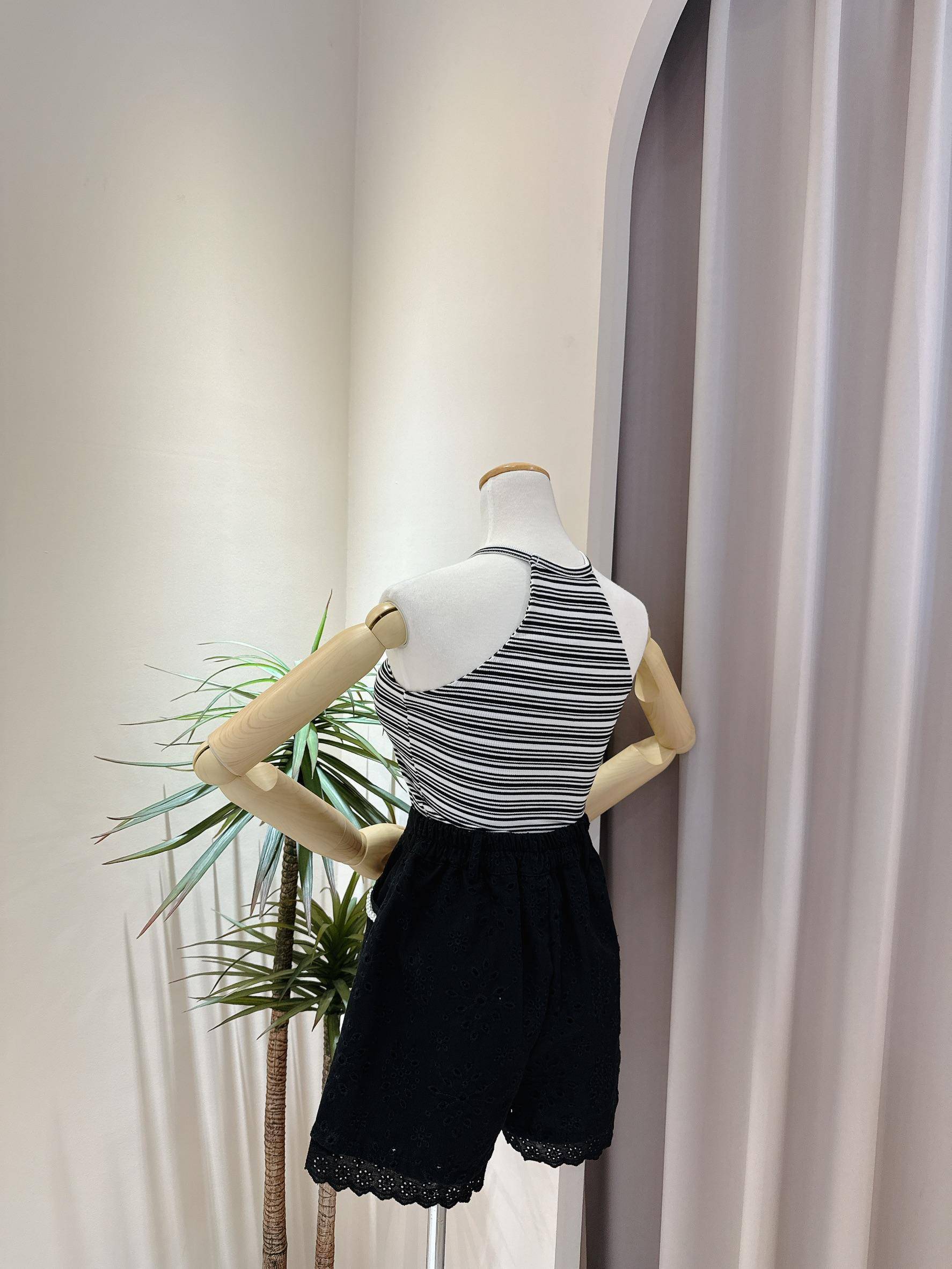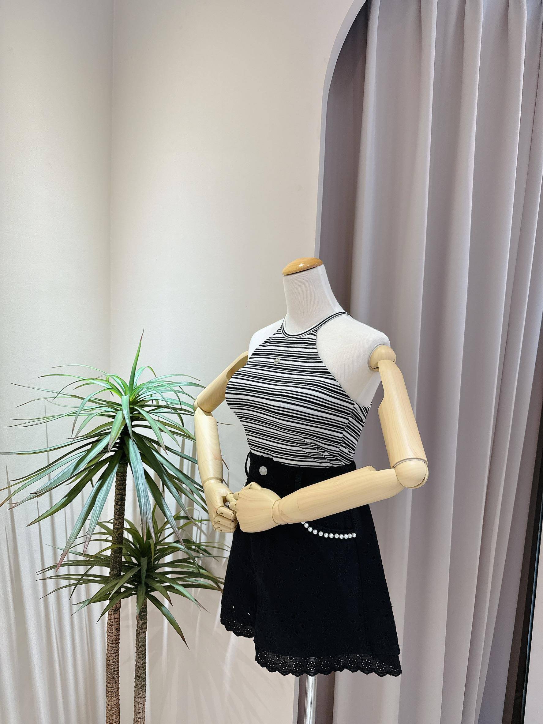 條紋霧面愛心小鐵牌削肩罩杯背心
