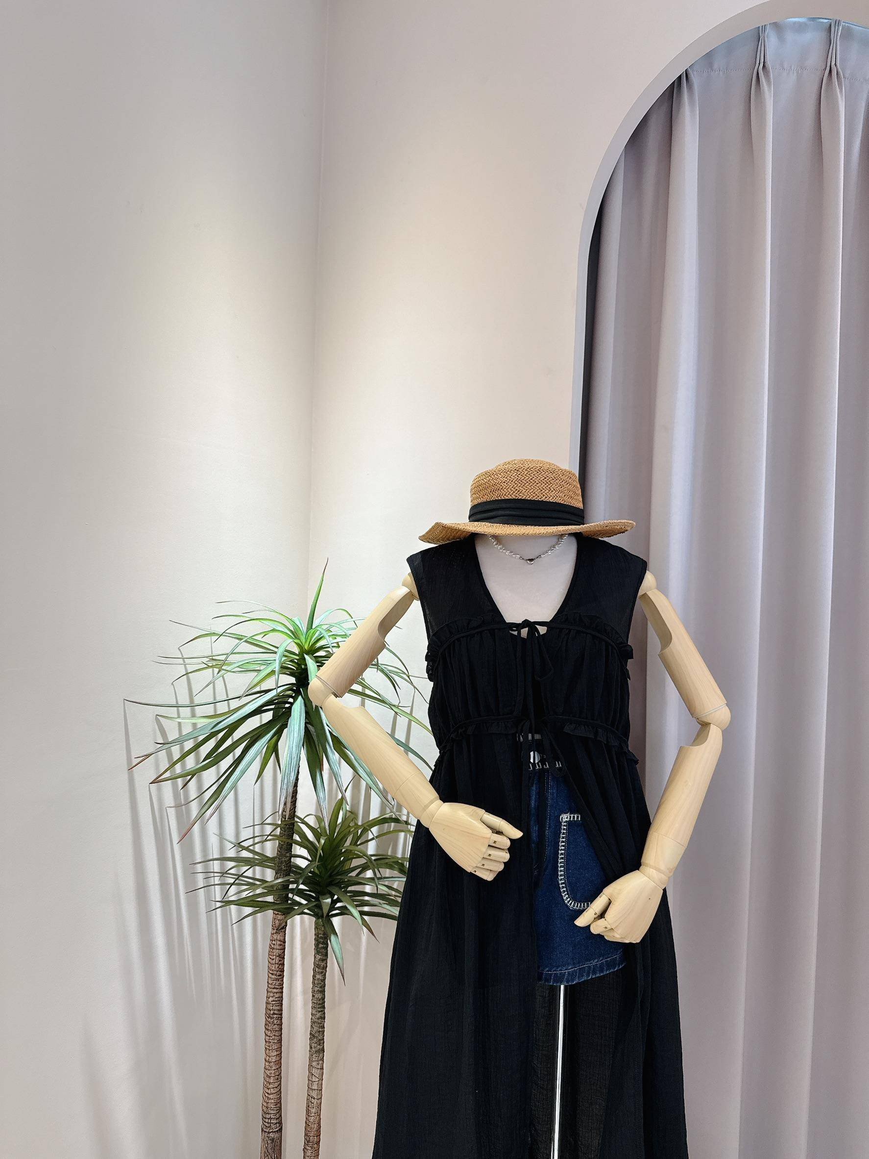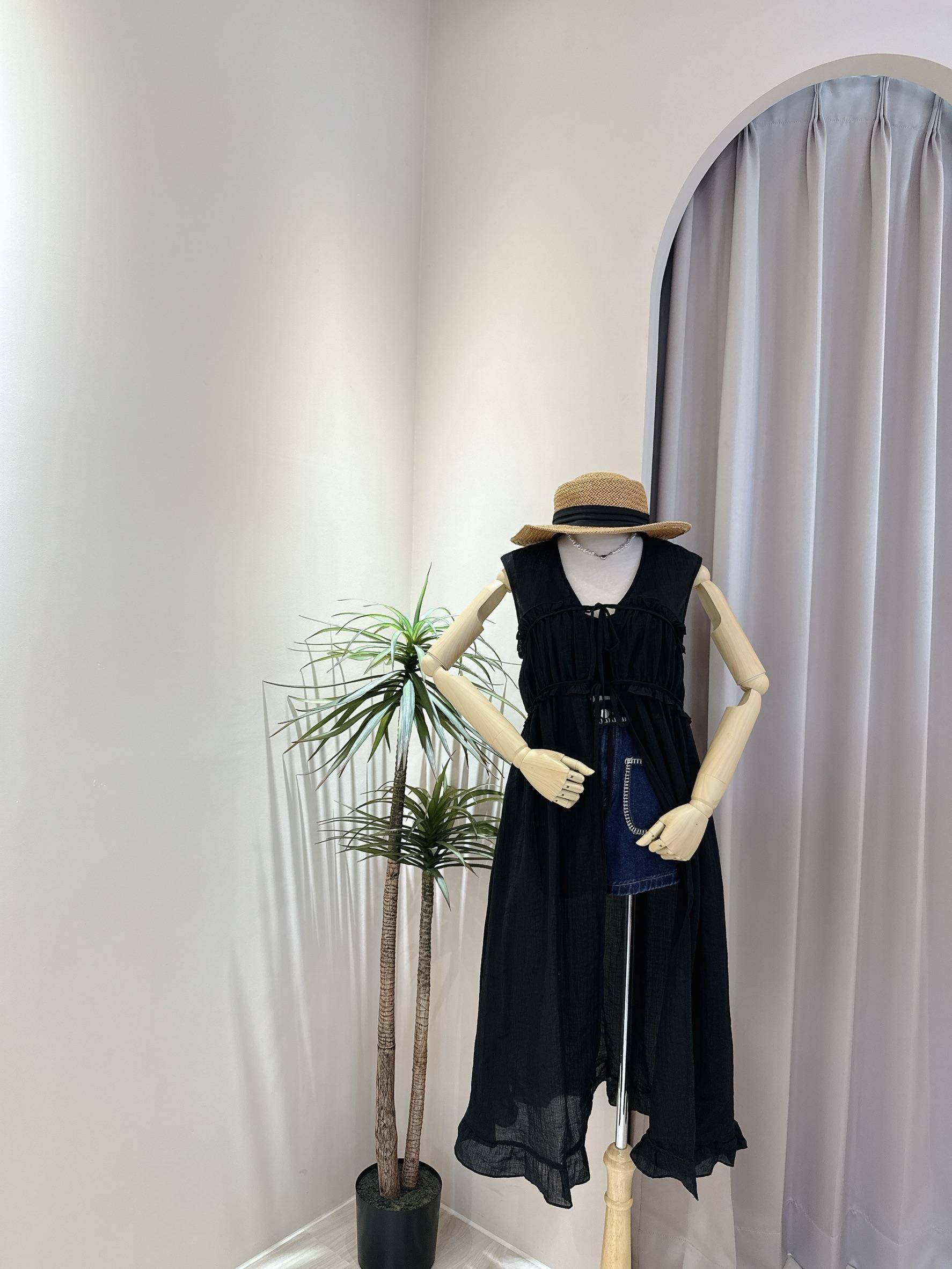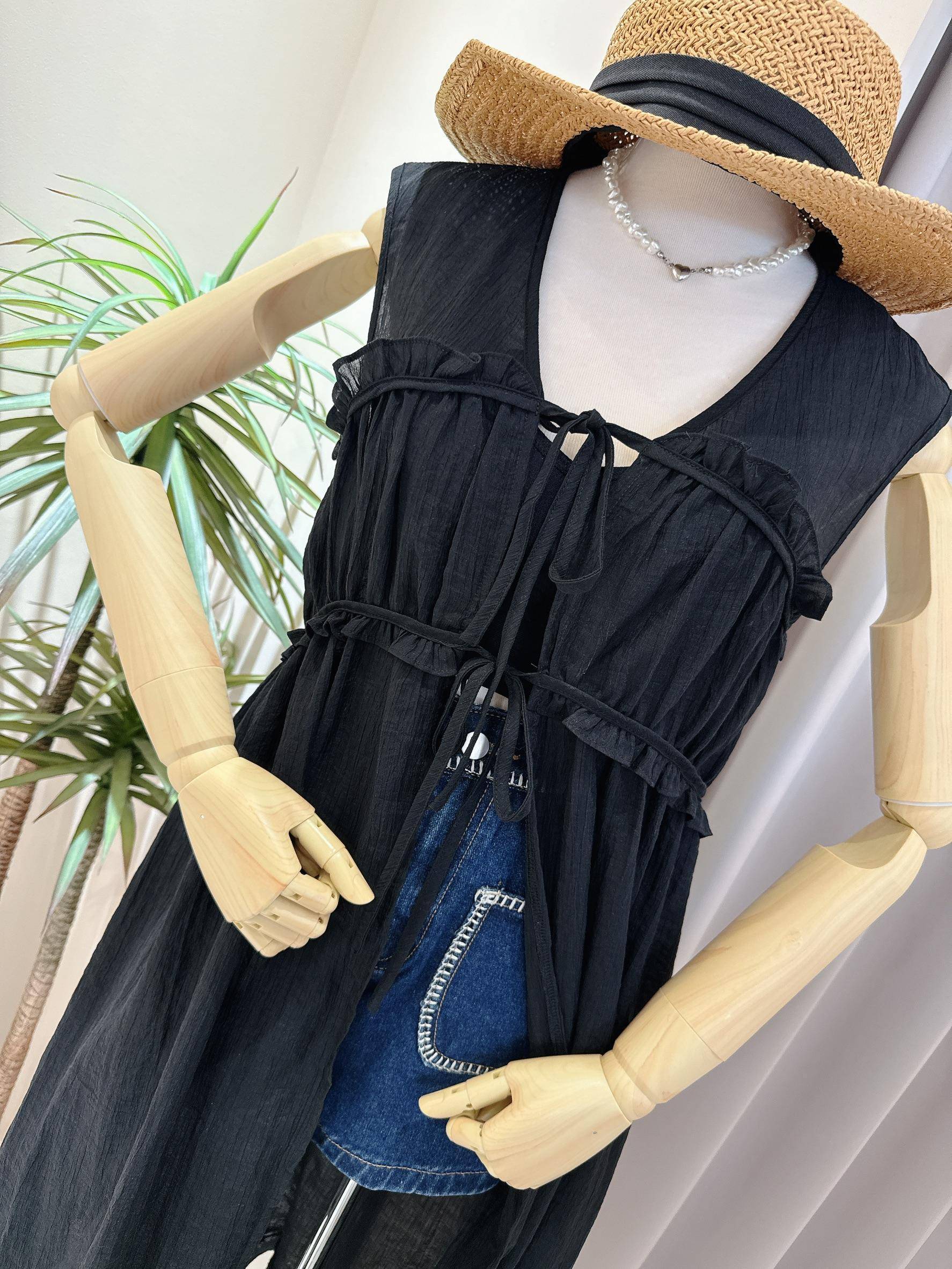 氣質蝴蝶結綁帶長版外搭