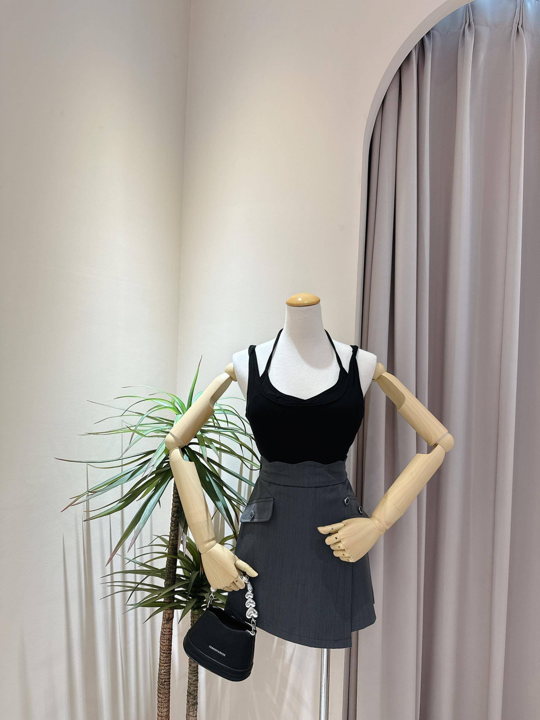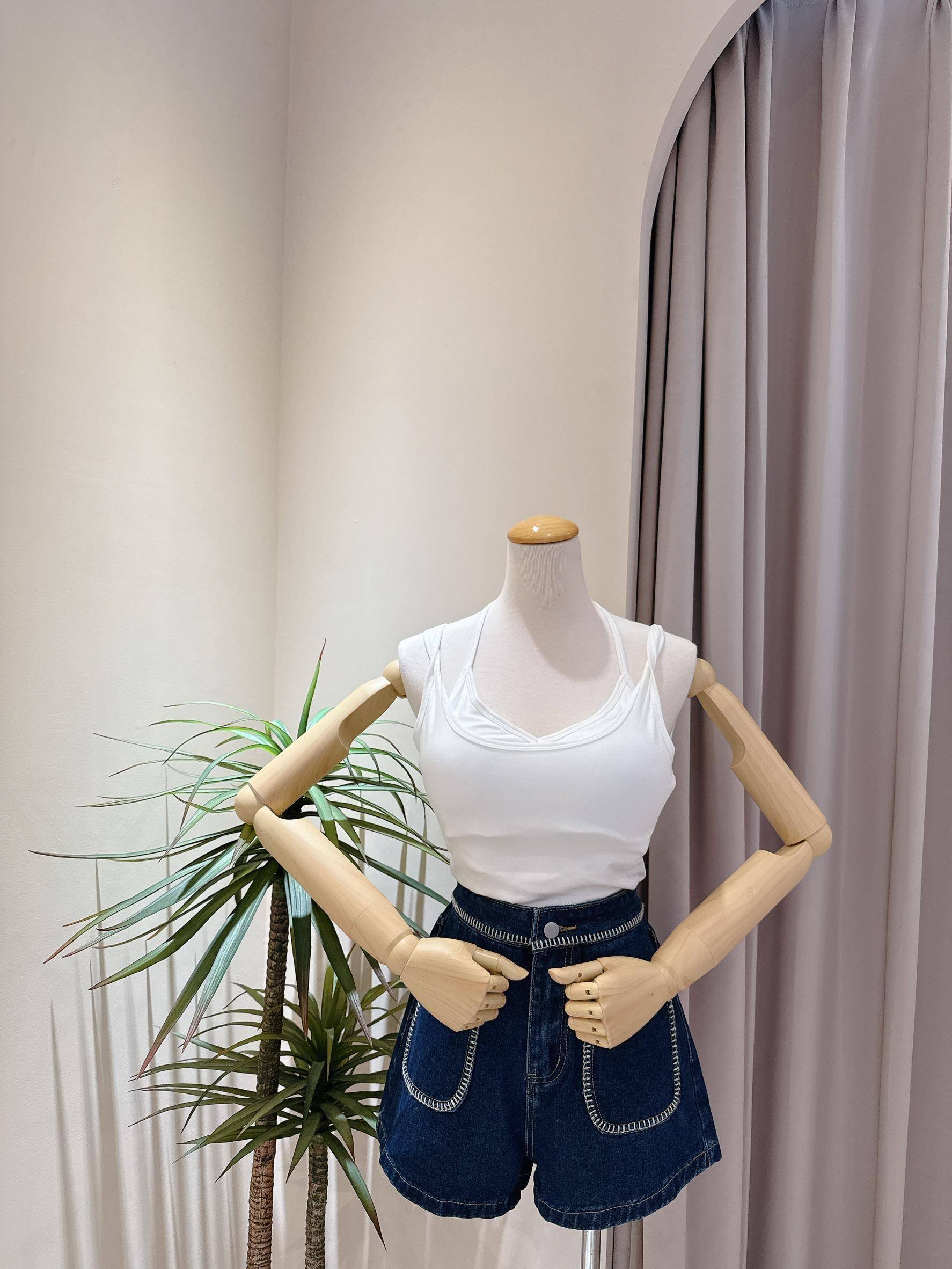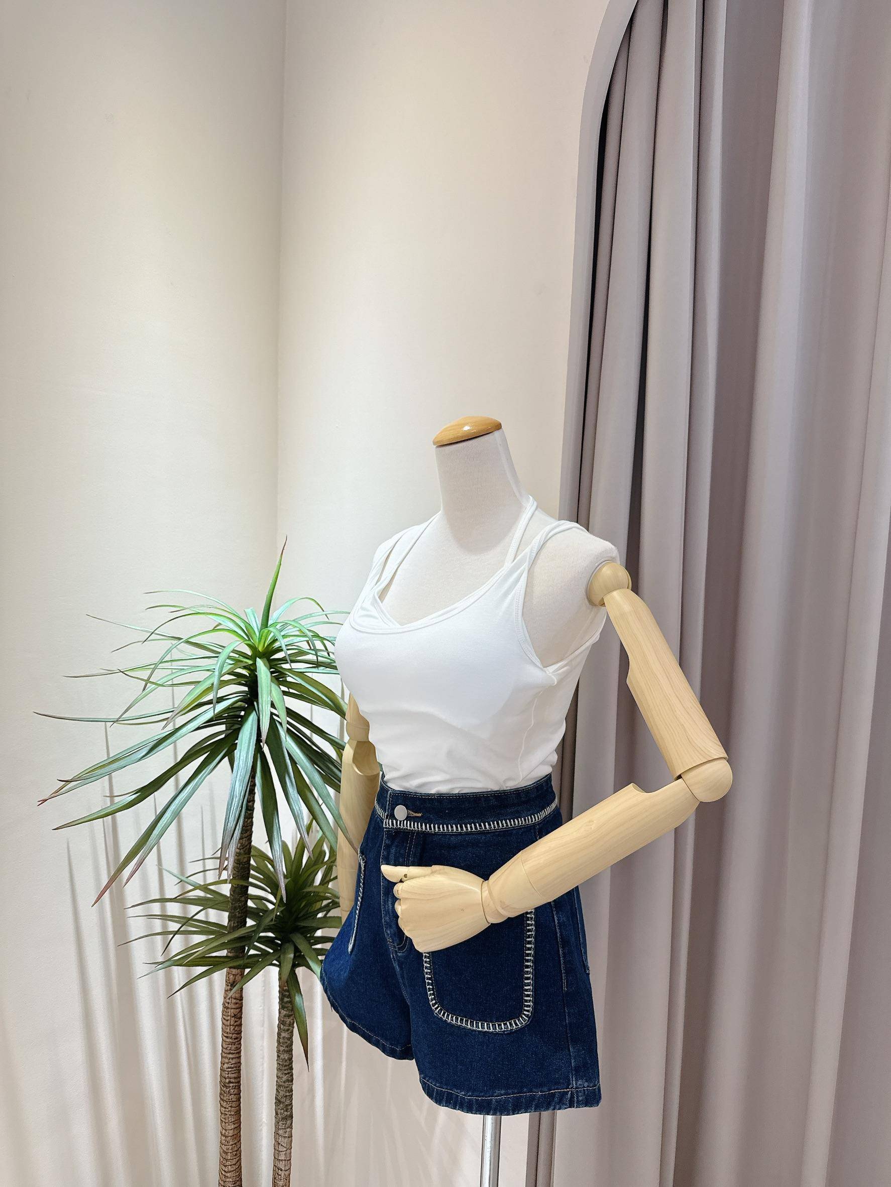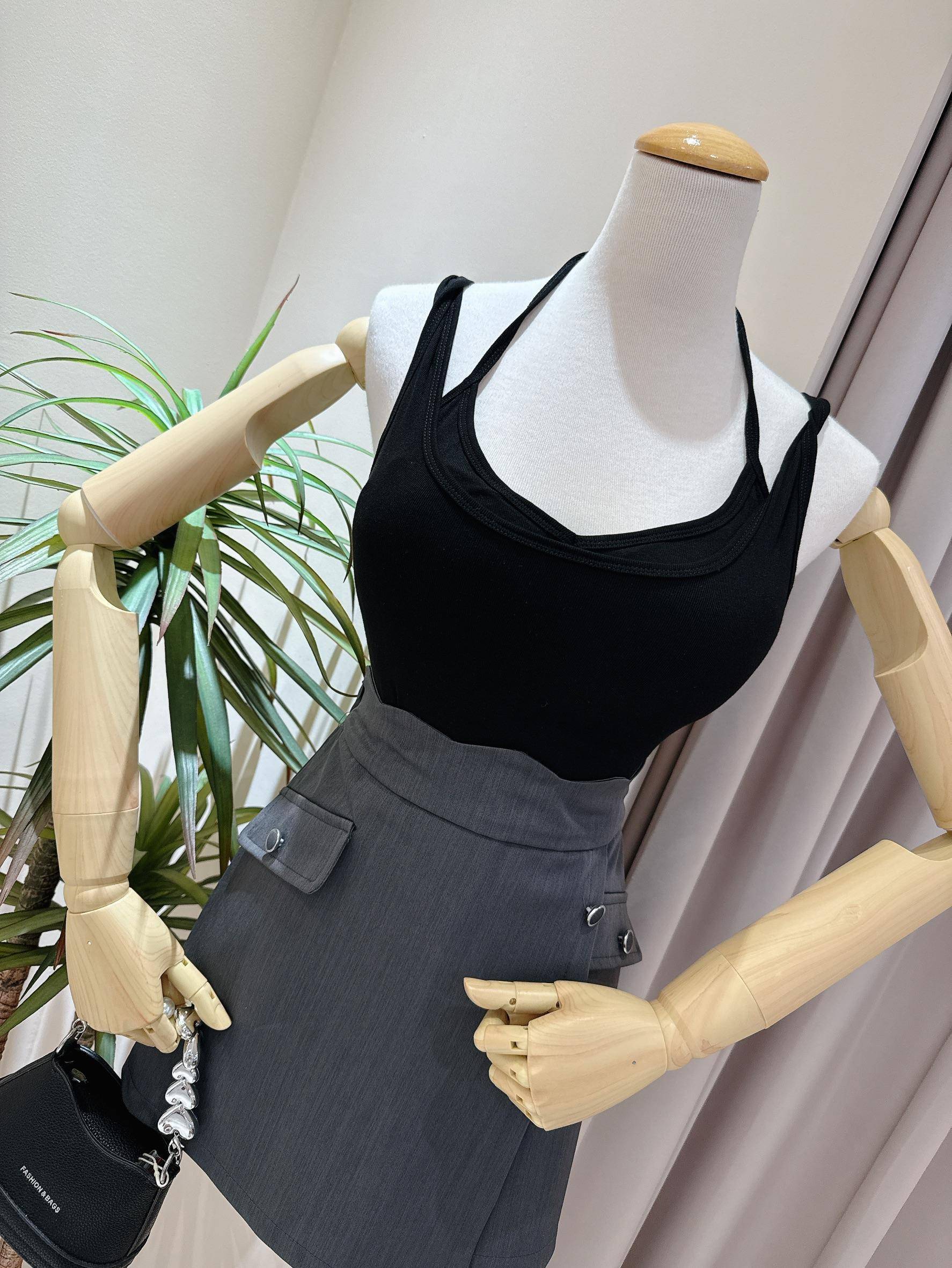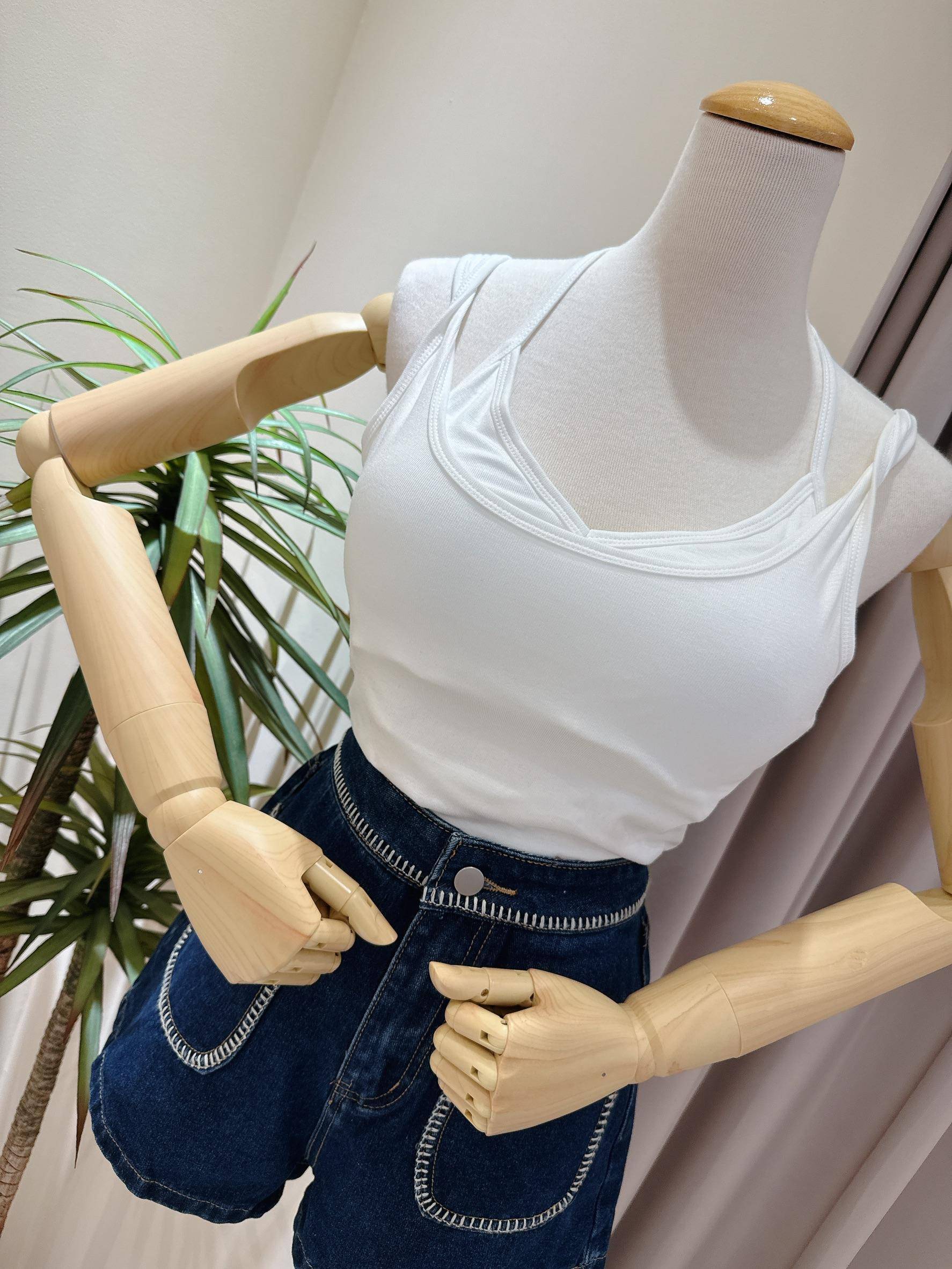 肩帶扭結假兩件罩杯背心