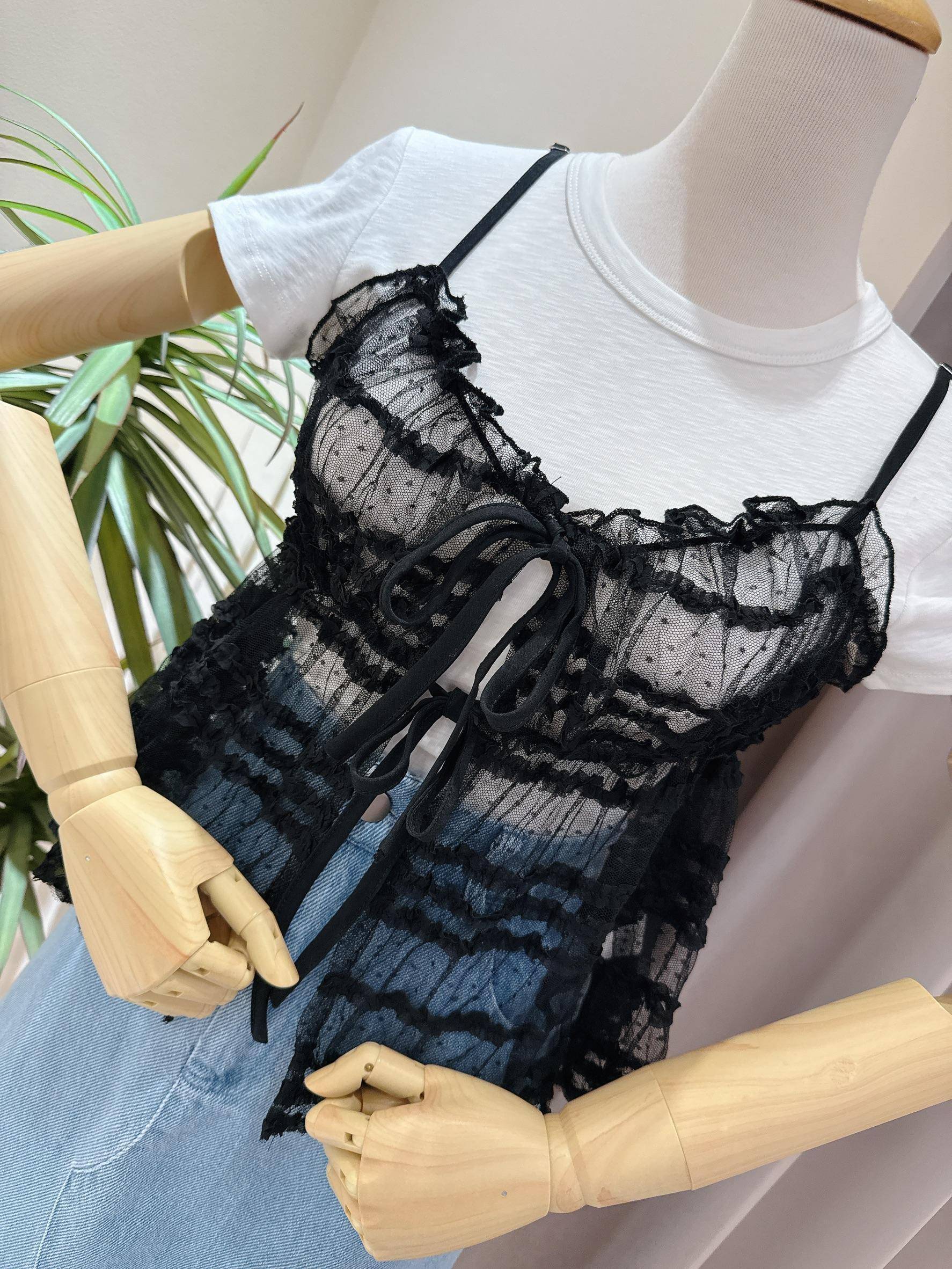 唯美蕾絲綁帶背心
