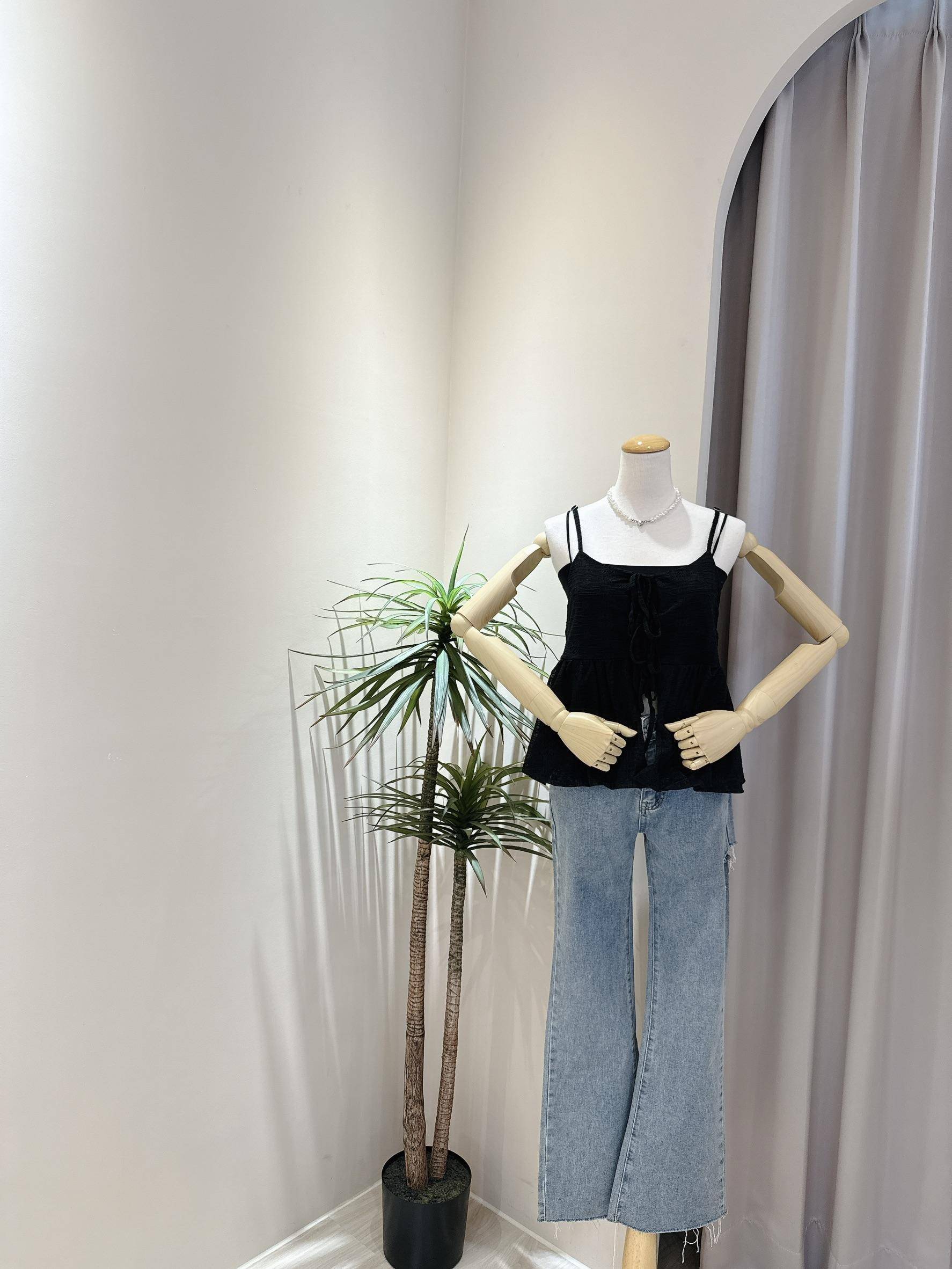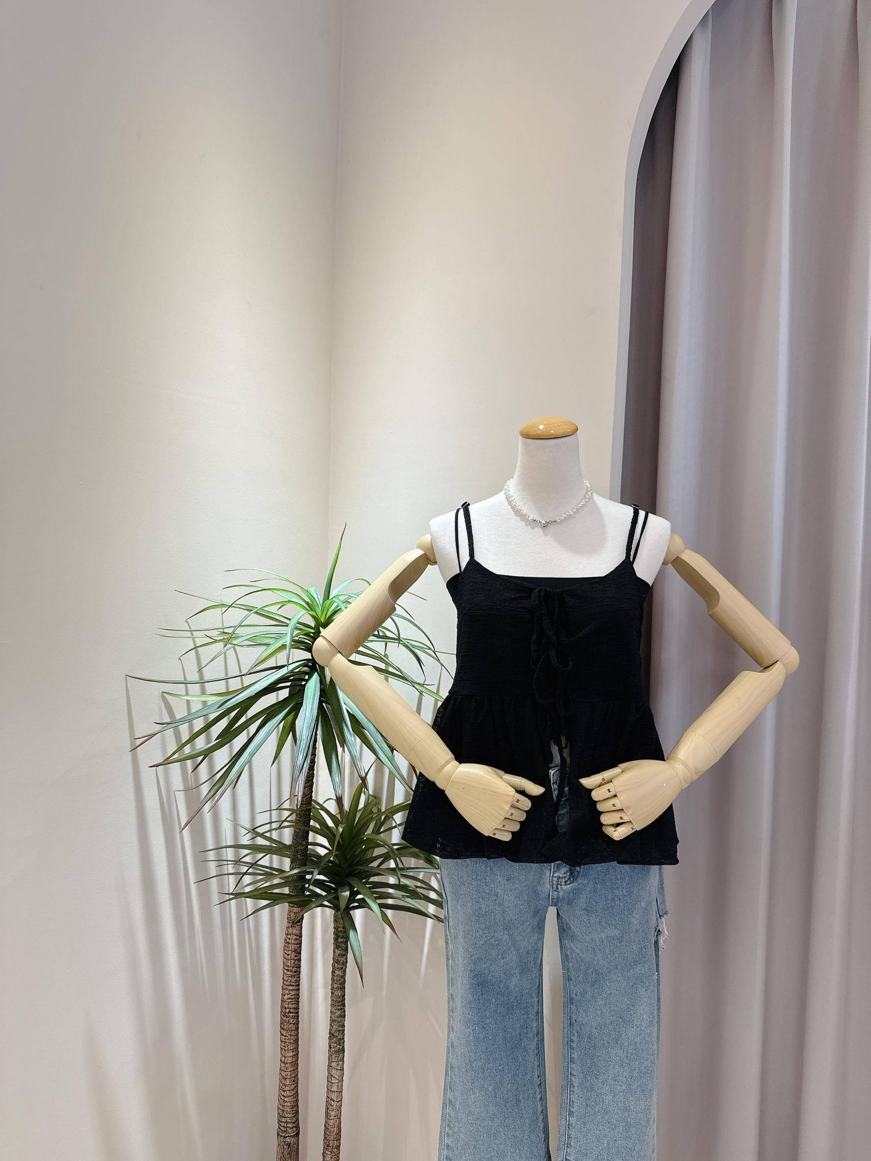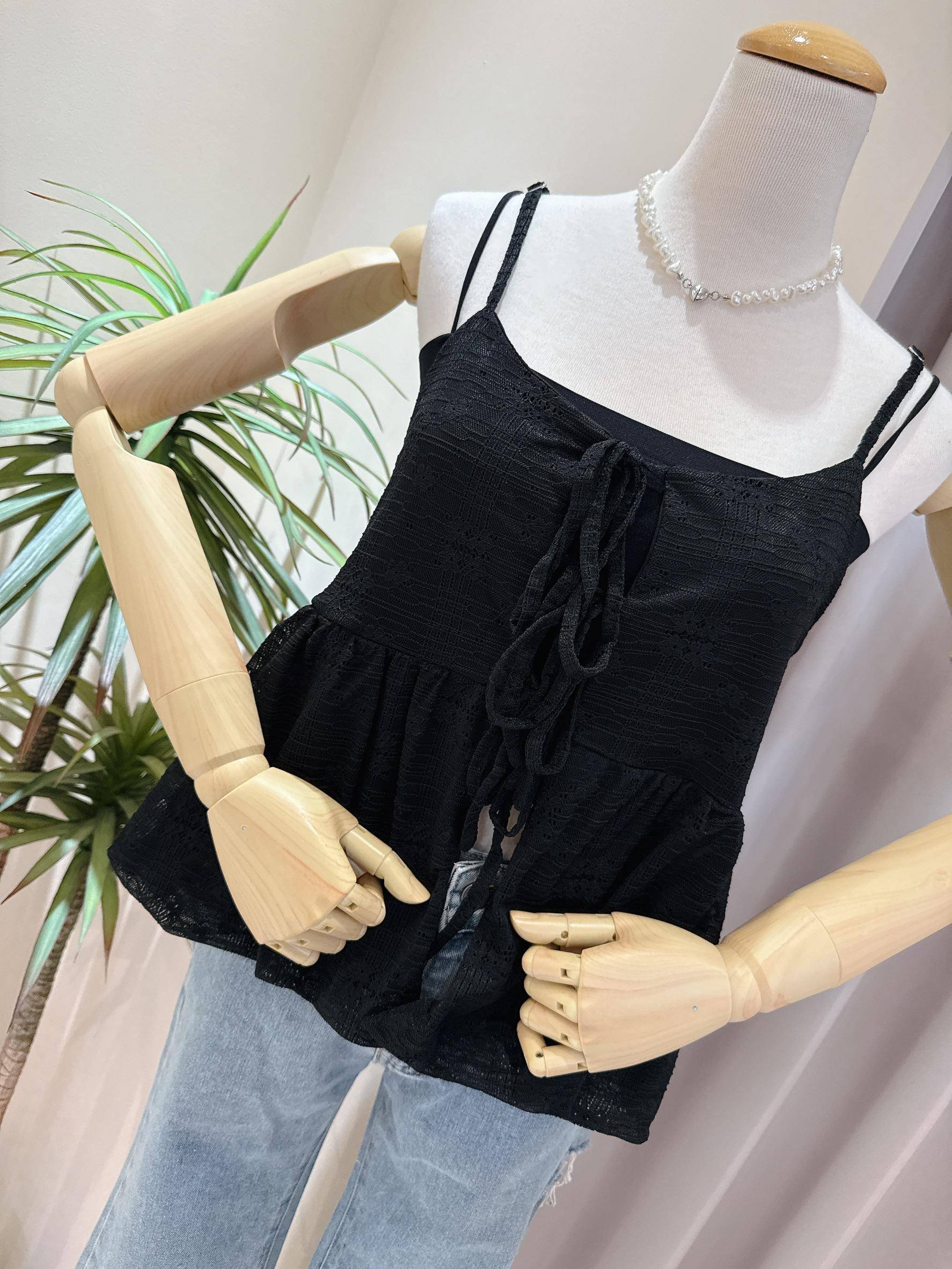 花苞下擺綁帶細肩帶背心