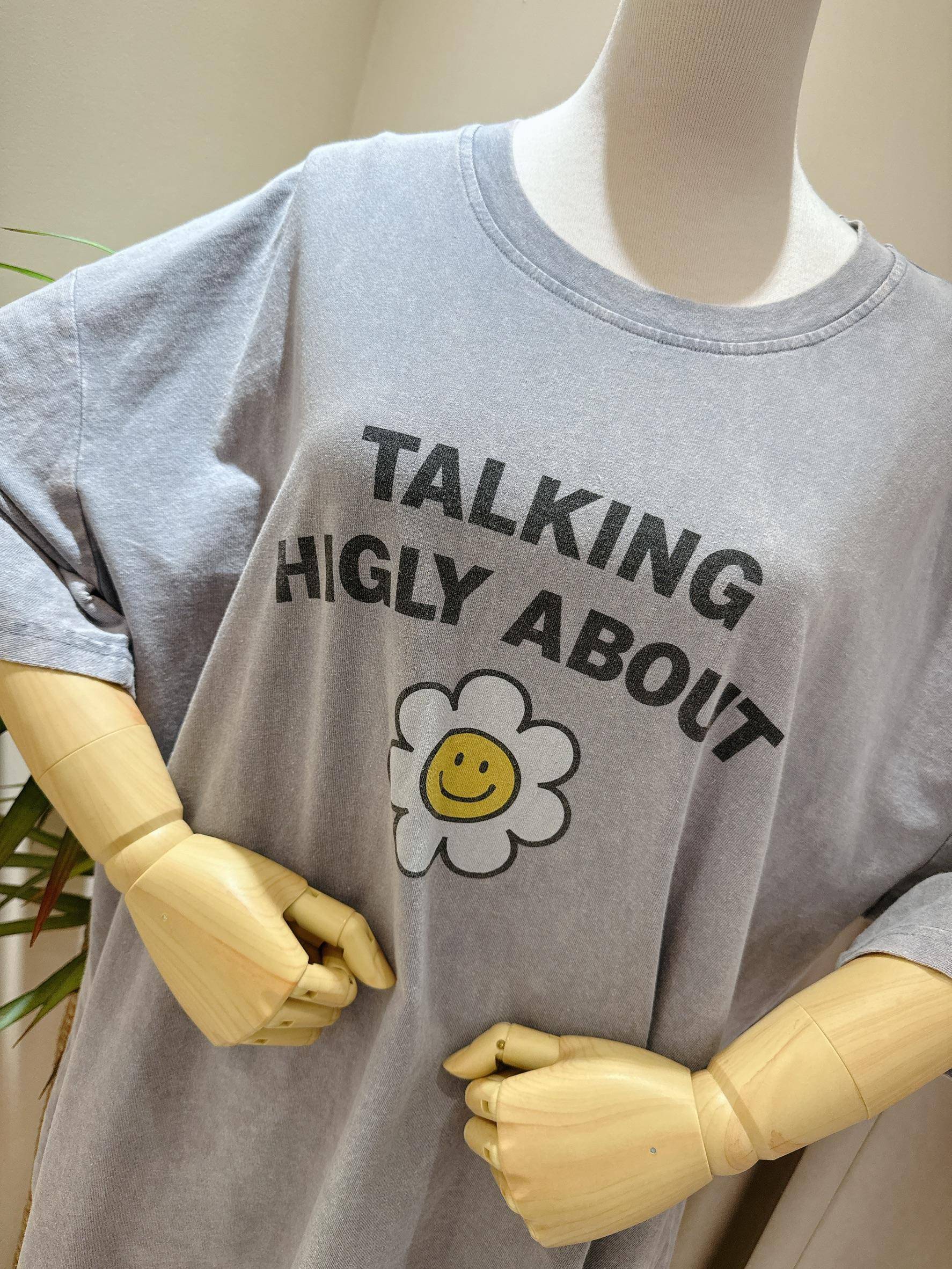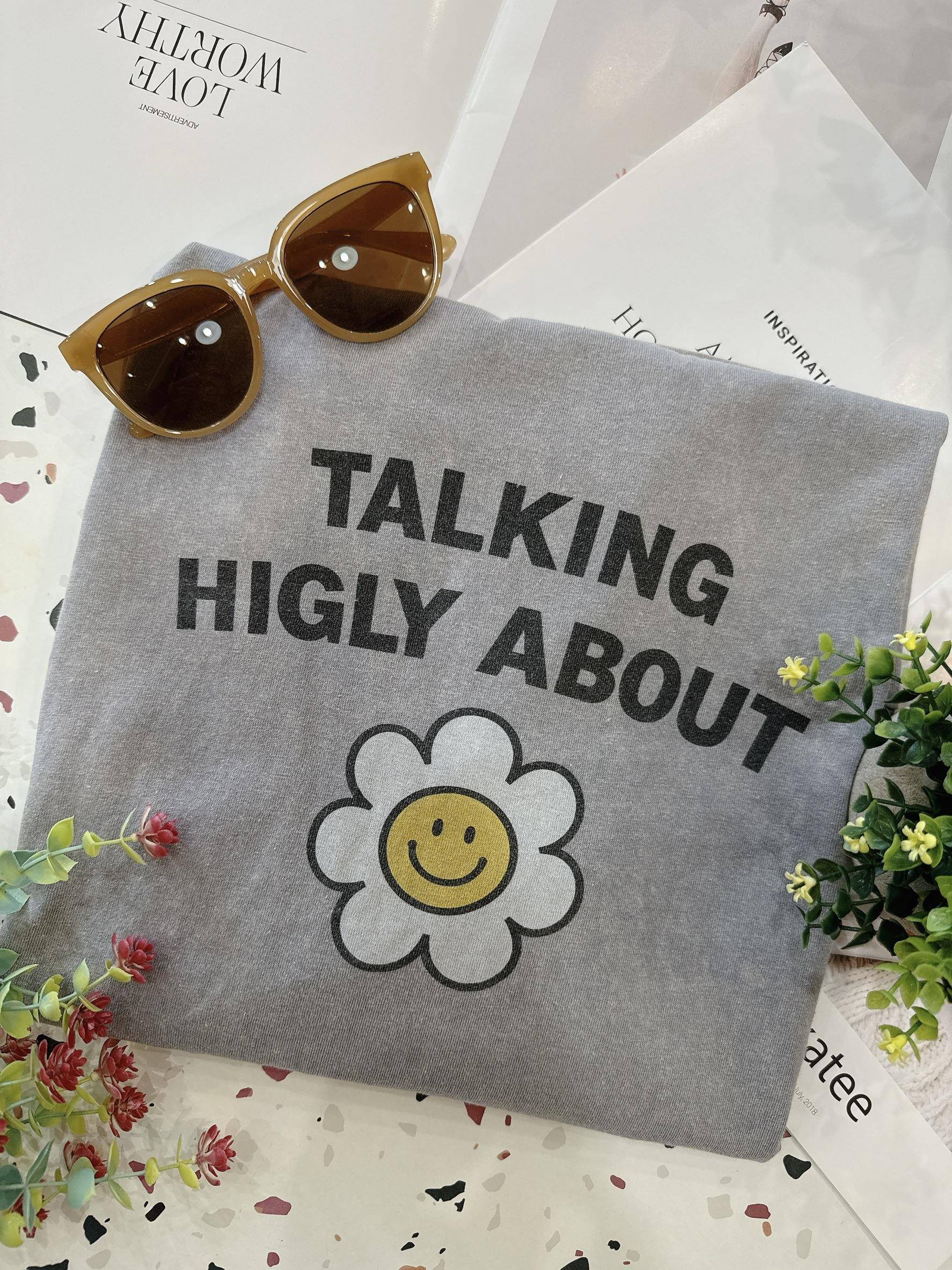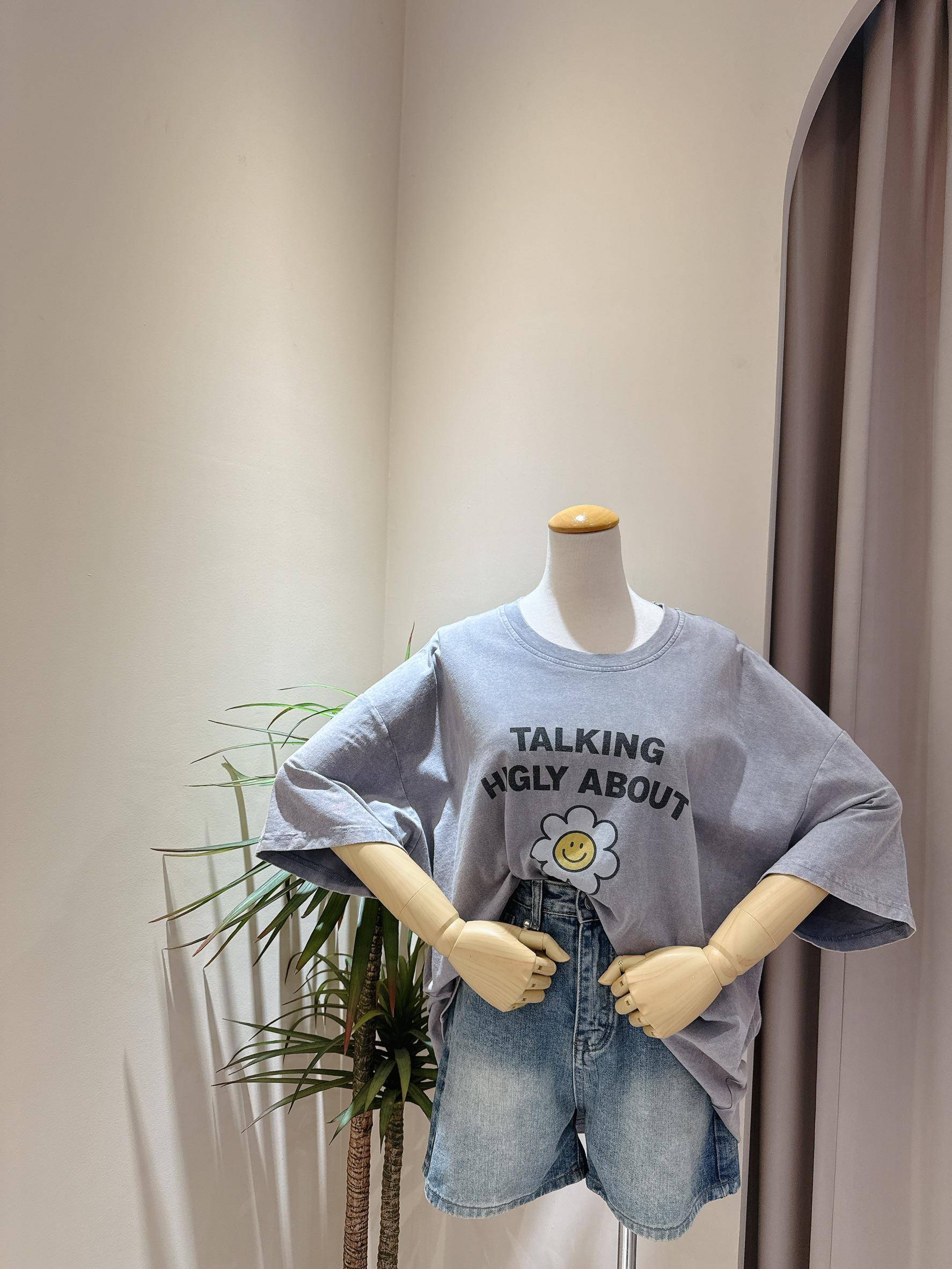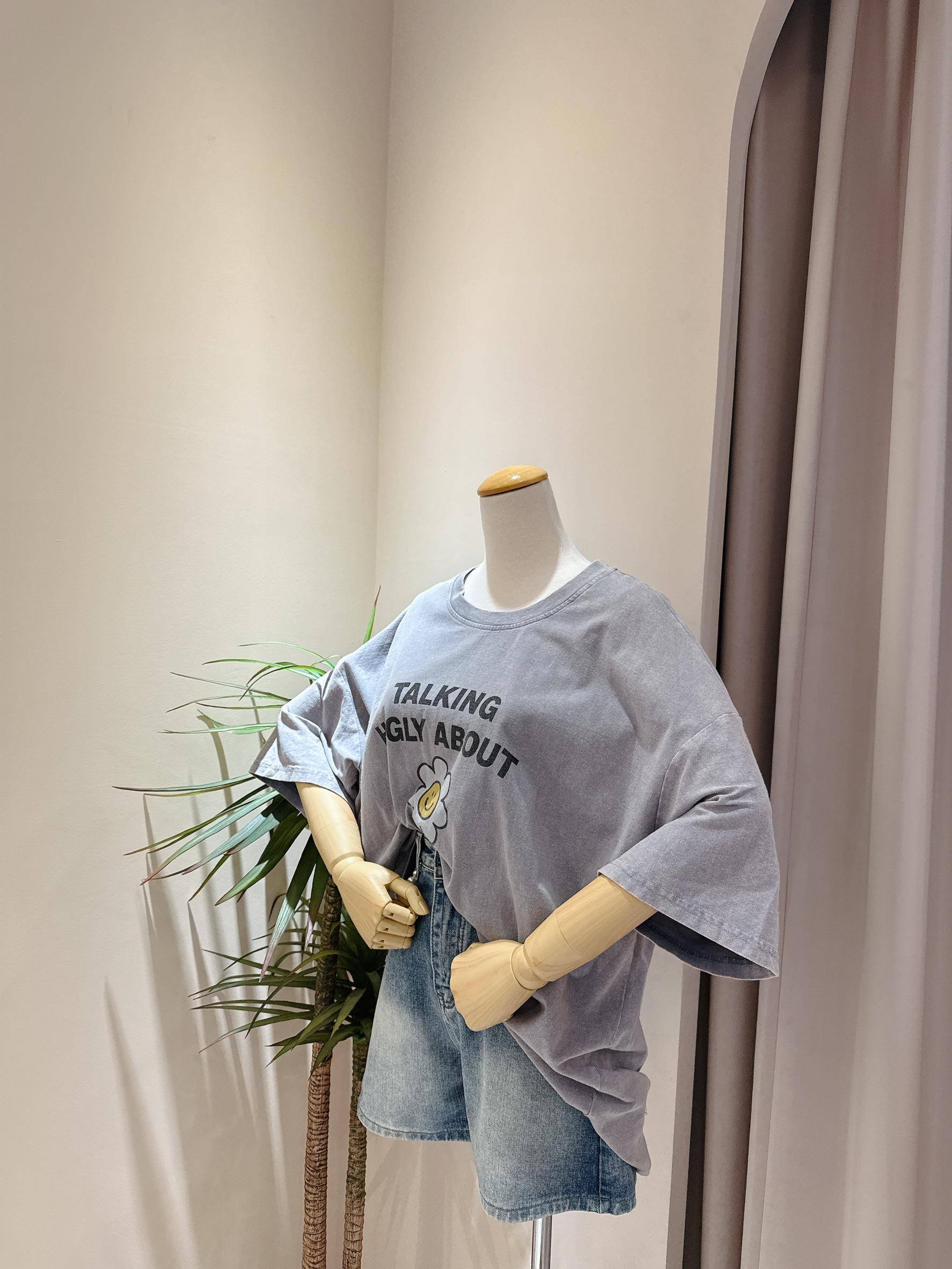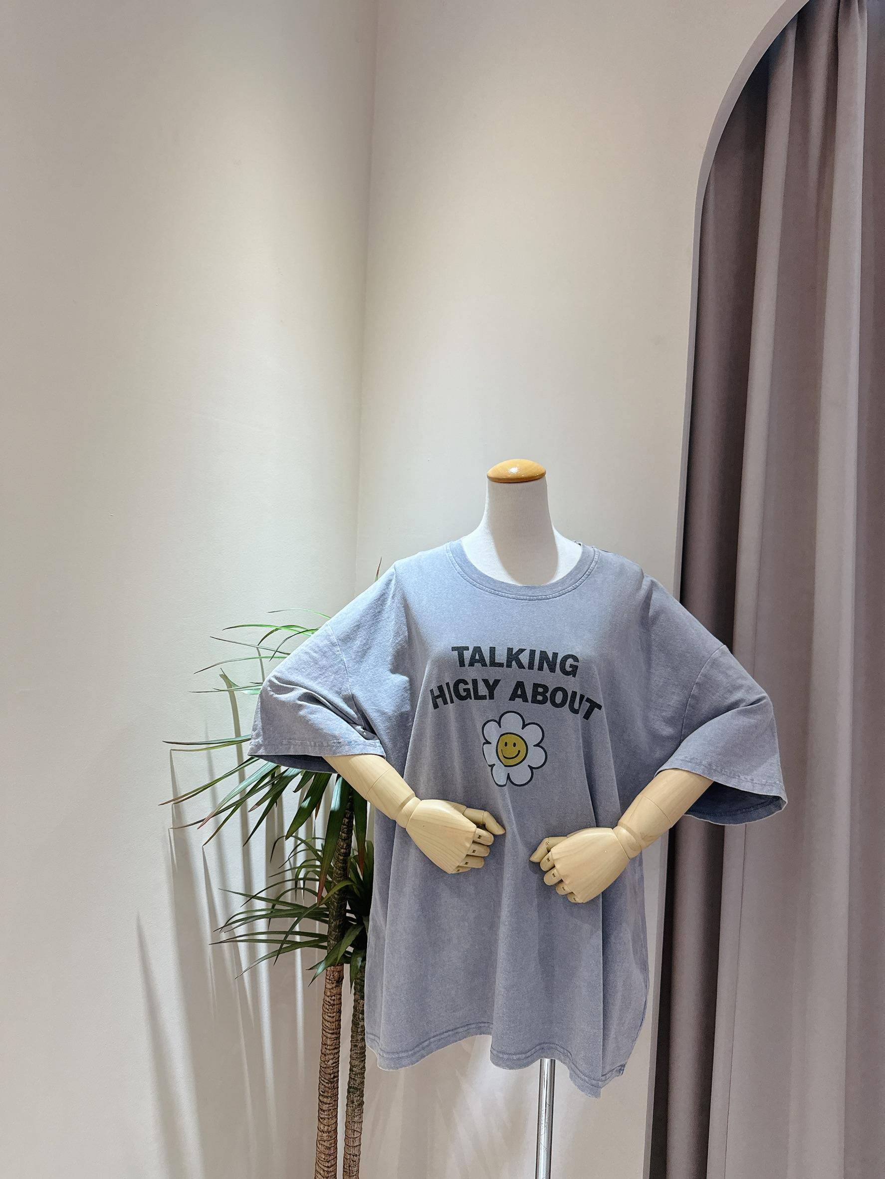 微笑小花刷舊造型寬鬆大T